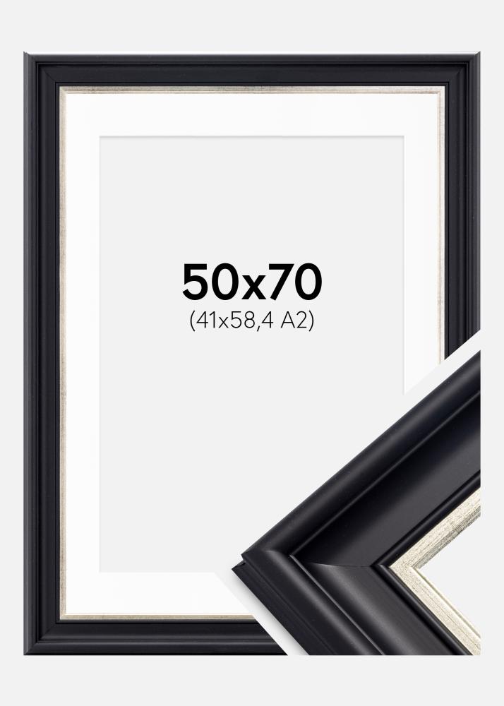 Okvir Dalarna Črno-Srebrna 50x70 cm - Paspartŭ Bela 42x59,4 cm (A2)