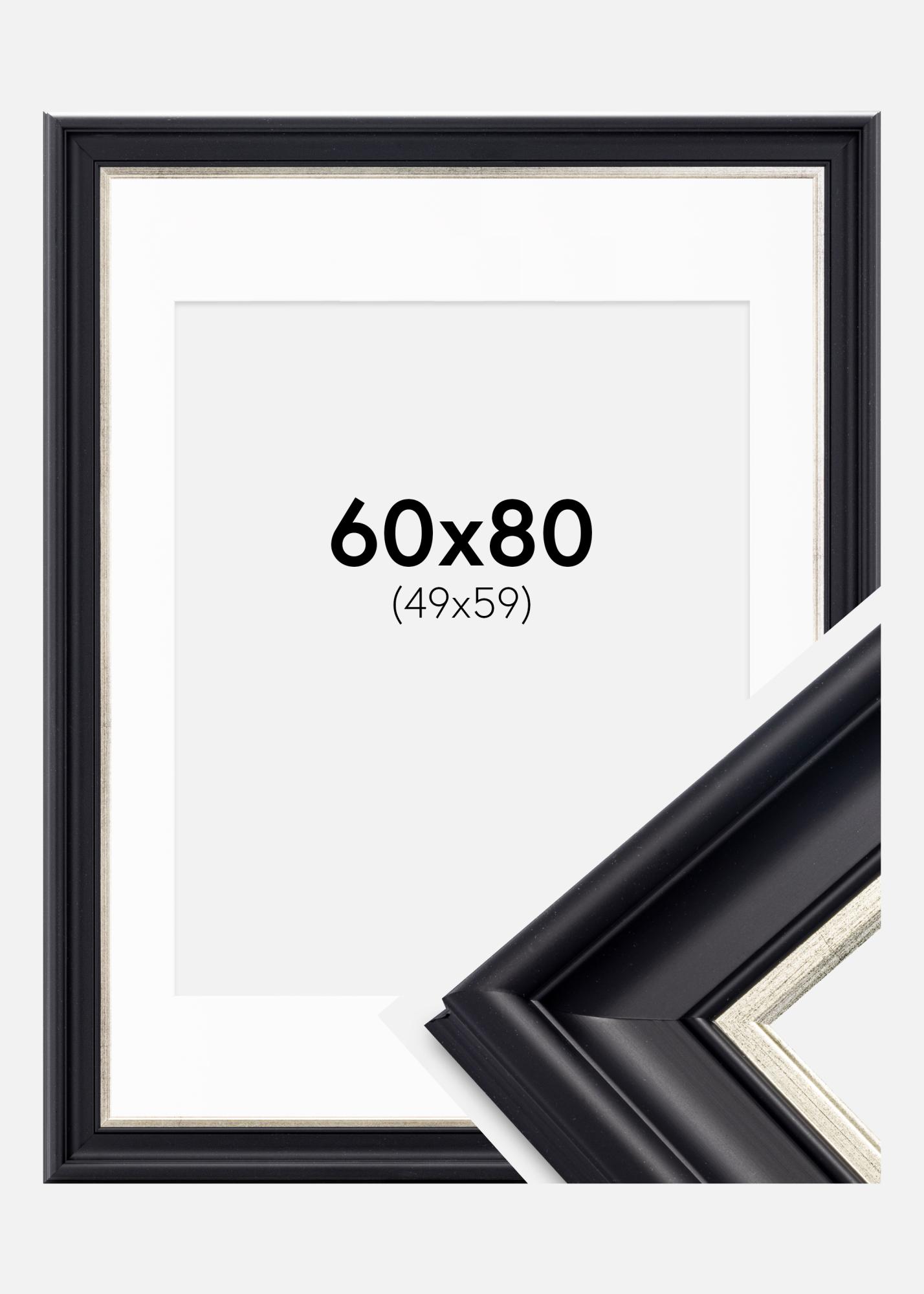 Okvir Dalarna Črno-Srebrna 60x80 cm - Paspartŭ Bela 50x60 cm