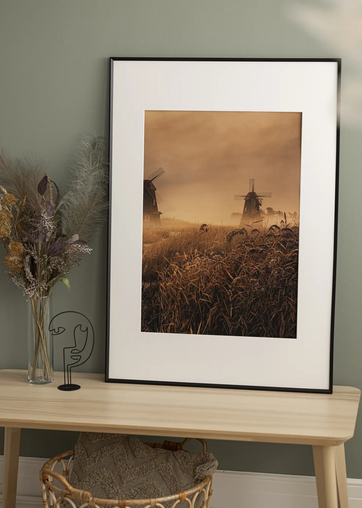 To je črn okvir za slike v modernem dizajnu s stilskim in mat profilom, ki je širok le 10 mm. Profil ima tudi rob pod kotom 45° z nagibom proti motivu, kar vaši sliki zagotavlja trendovski in eleganten okvir. Učinkovit okvir je dodatno poudarjen z globino profila 18 mm, kar okvirju daje občutek trdnosti.