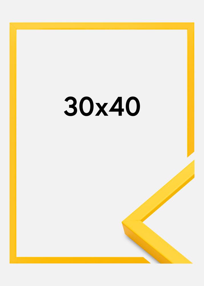 To je okvir, ki je v lepi rumeni odtenki. Okvir je švedsko izdelan leseni okvir z akrilnim steklom, kar je oblika plastike, ki spominja na steklo, vendar ni tako krhka. Okvirna letvica meri 12 mm v širino in 20 mm v globino. Pisano obarvan okvir lahko resnično ustvari veselo in prijetno atmosfero v vašem domu ter poudari katerikoli motiv. Morda želite dodati malo več življenja črno-beli poster ali lepo uokviriti osebni poster z besedilom? Potem je pisan rumen okvir popoln! Na hrbtni strani okvirja so pritrjeni stenski nosilci za pokončno in ležečo namestitev. Okvir E-Line je na voljo v različnih barvah in velikostih, od katerih ta meri 30x40 cm.