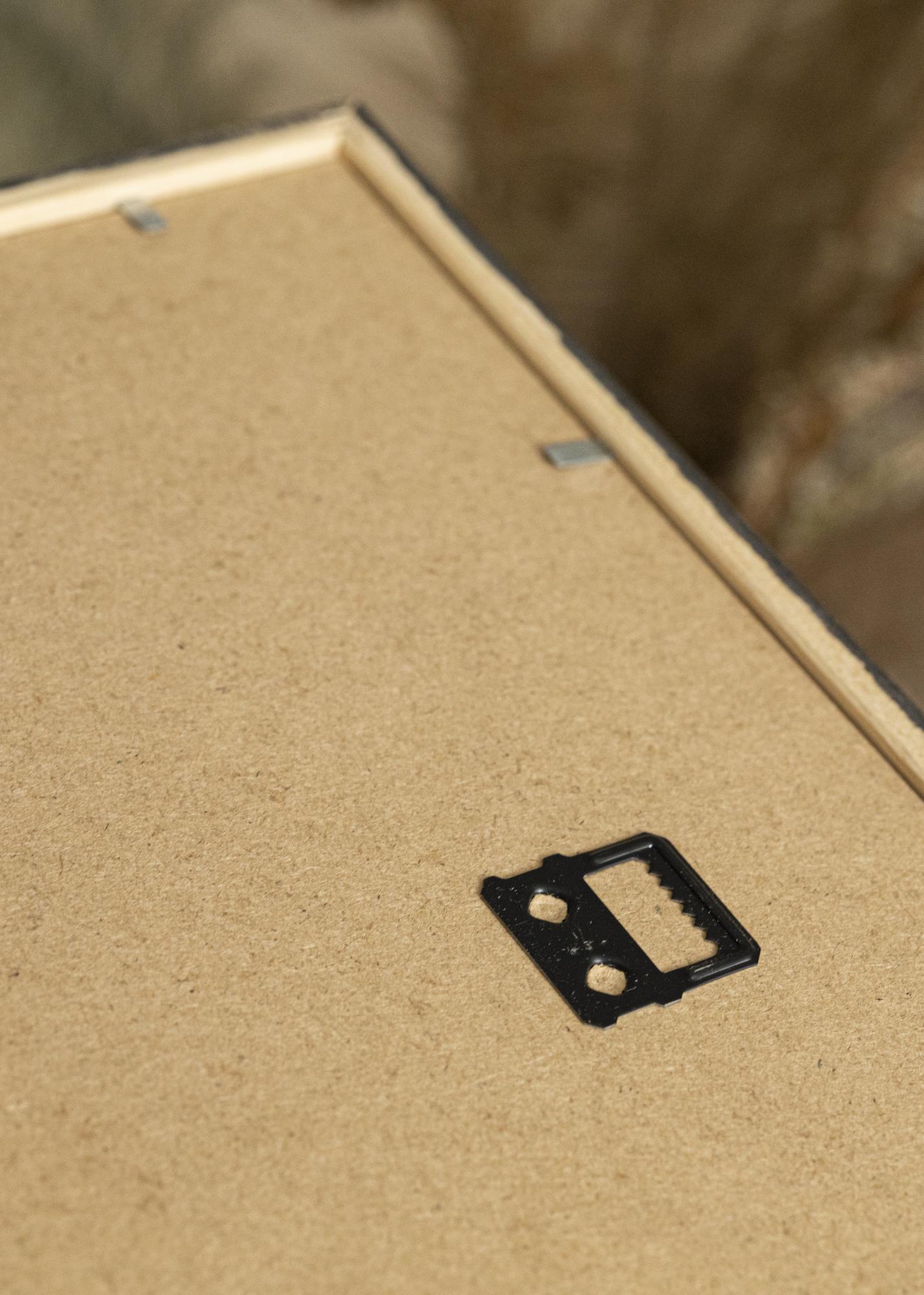 Vaši motivi se pritrdijo z upogljivimi zatiči na zadnji strani okvirja. Na voljo so tudi pritrditve za stensko montažo v pokončnem in ležečem položaju. Manjše velikosti okvirjev v seriji imajo vgrajeno podporno nogico, da jih lahko enostavno postavite kot dekorativni element na knjižno polico ali nočno omarico.