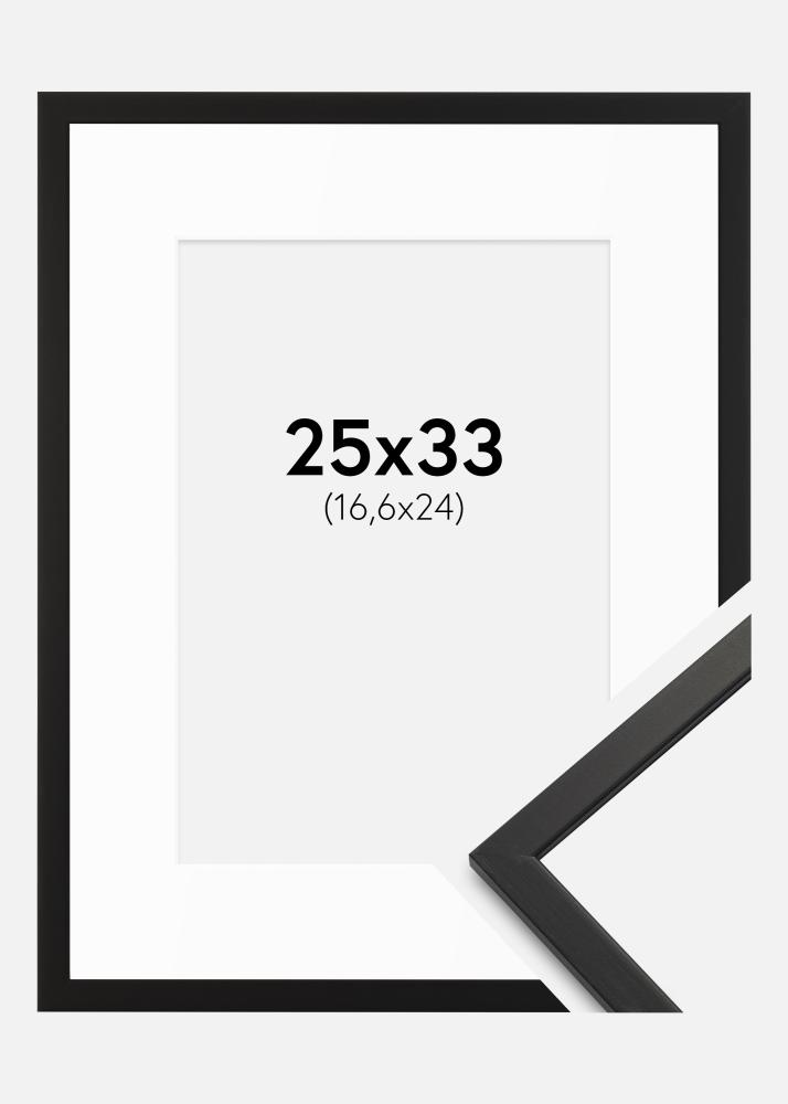 Okvir ima širino 13 mm in globino 11,5 mm, kar daje stabilen in trden občutek. Mat površina v črni barvi ustvarja brezčasen videz, ki se prilega večini notranjih stilov. Z zunanjimi merami 26,6x34,6 cm je ta okvir popoln za ustvarjanje elegantne in prefinjene stenske dekoracije.