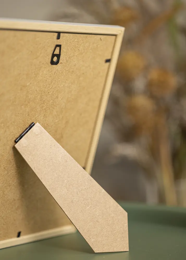 Okvir ima diskretno širino 13 mm in globino 11,5 mm, kar omogoča lepo uokvirjanje, ne da bi dominiral sliko. Mat površina okvirja dopolnjuje pasparto in ustvarja harmonično celoto. Zunanje mere okvirja so 21,6x31,6 cm, kar je idealno za uokvirjanje vaše 10x20 cm slike z okoli paspartojem.