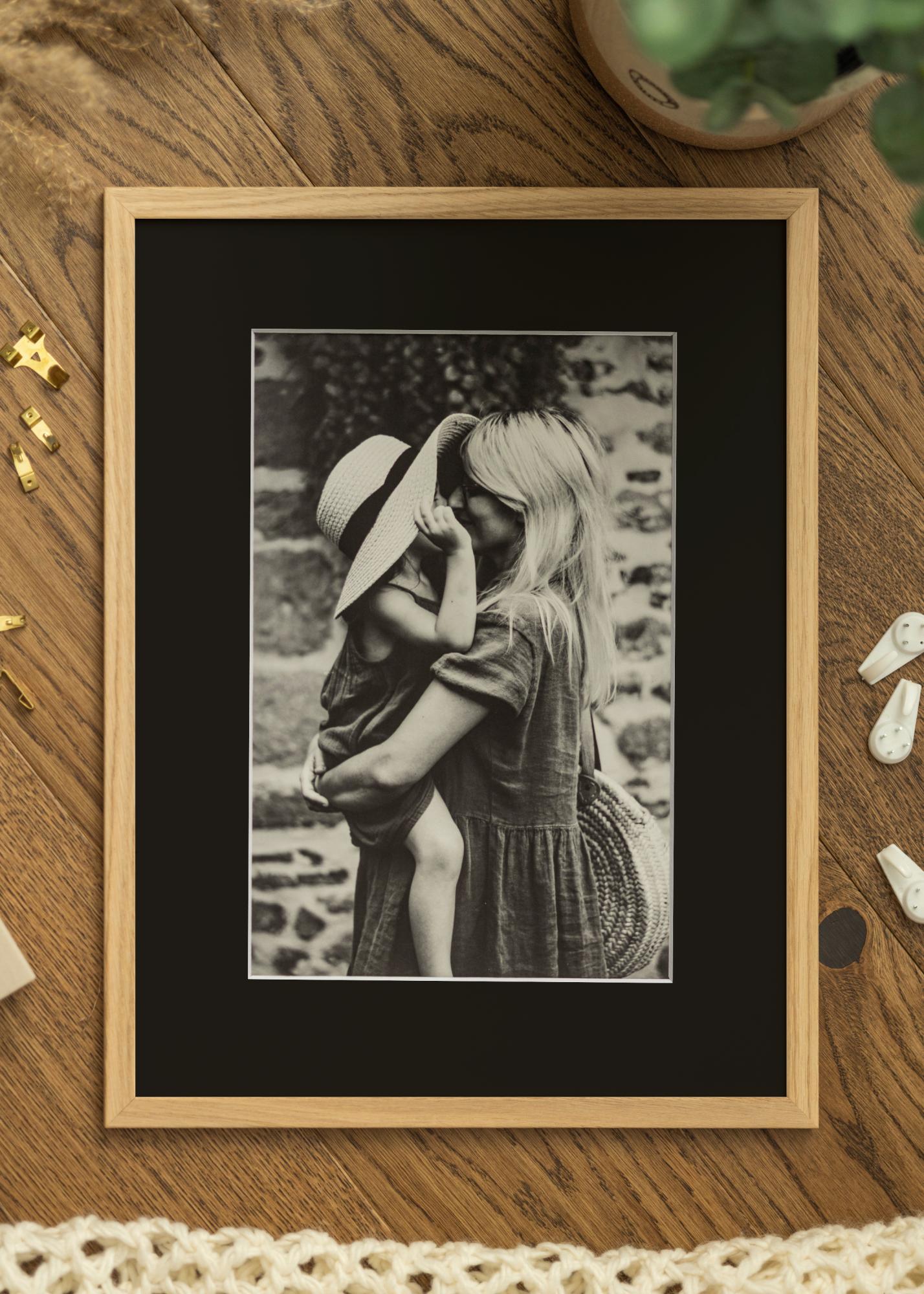 Podarite vašim najljubšim slikam pozornost, ki si jo zaslužijo, z elegantnim okvirjem s paspartujem. Ta stilni okvir v barvi lesa je širok 13 mm in ima globino 11,5 mm, kar daje vaši sliki ali umetniškemu delu izrazit in sofisticiran rob. Črni paspartu poudari sliko in ustvari vizualni premor, ki okrepi kontrast in osredotoči oko opazovalca na motiv.