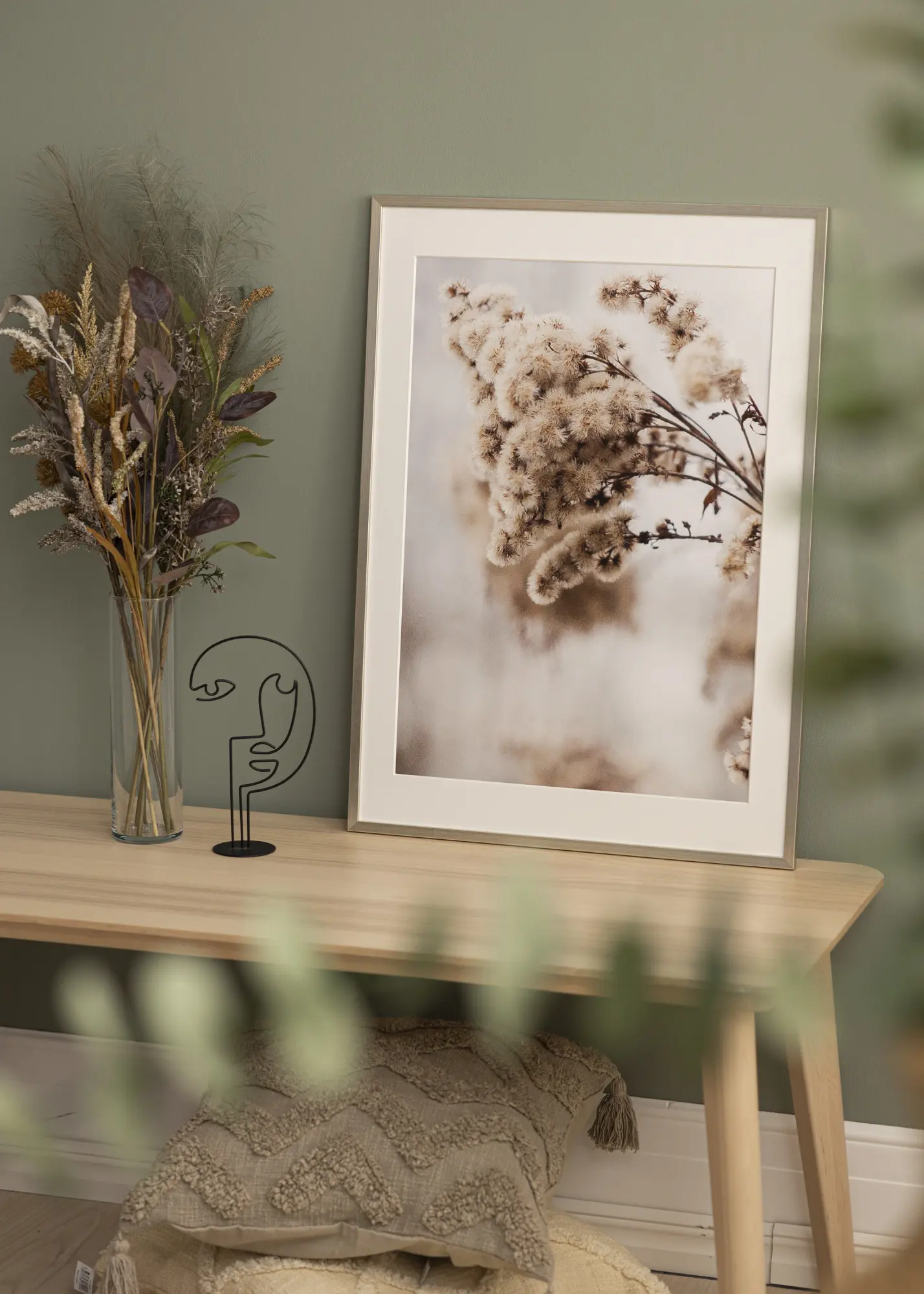 Polepšajte svoje stene z elegantnim srebrnim okvirjem, ki daje vaši sliki ali umetniškemu delu pozornost, ki si jo zasluži. S slikovno velikostjo 24x34 cm in belim passepartout, motiv izstopa na prefinjen način in ustvarja vizualni premor, ki pritegne gledalčevo oko k sliki. Passepartout ne dodaja le estetske vrednosti, temveč tudi ščiti sliko pred stikom s steklom, kar ohranja njeno kakovost skozi čas.