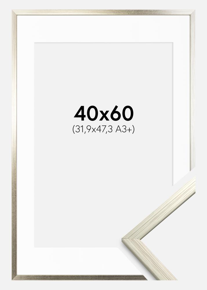 Okvir Edsbyn Srebrna 40x60 cm - Paspartŭ Bela 32,9x48,3 cm (A3+)