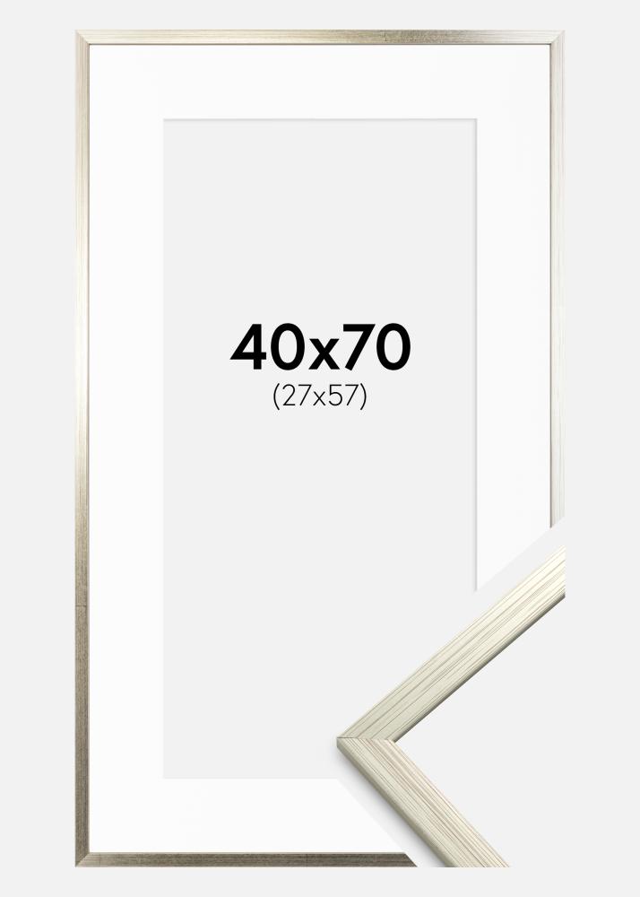 Pretvorite svojo najljubšo fotografijo ali umetniško delo v elegantno stensko dekoracijo z našim prefinjenim okvirjem srebrne barve. S širino 13 mm in globino 11,5 mm ta sijoč okvir dodaja izrazit in sodoben občutek vaši notranji opremi. Beli passepartout poudari sliko velikosti 28x58 cm in ustvarja vizualni premor, ki poudari lepoto umetnine, hkrati pa jo zaščiti pred dotikom stekla.