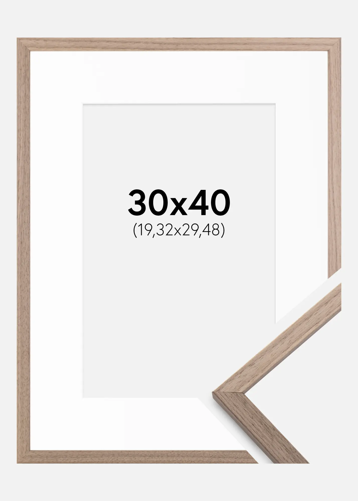 Podarite svojim najljubšim fotografijam pozornost, ki si jo zaslužijo, s pomočjo elegantnega lesenega okvirja, dopolnjenega z belim passepartoutom. Ta kombinacija izpostavi vašo fotografijo ali umetniško delo, medtem ko hkrati daje profesionalen in sofisticiran vtis. Passepartout, s svojo čisto belo barvo, ustvarja vizualni odmik med sliko in okvirjem, kar okrepi kontrast in poskrbi, da motiv resnično pride do izraza.