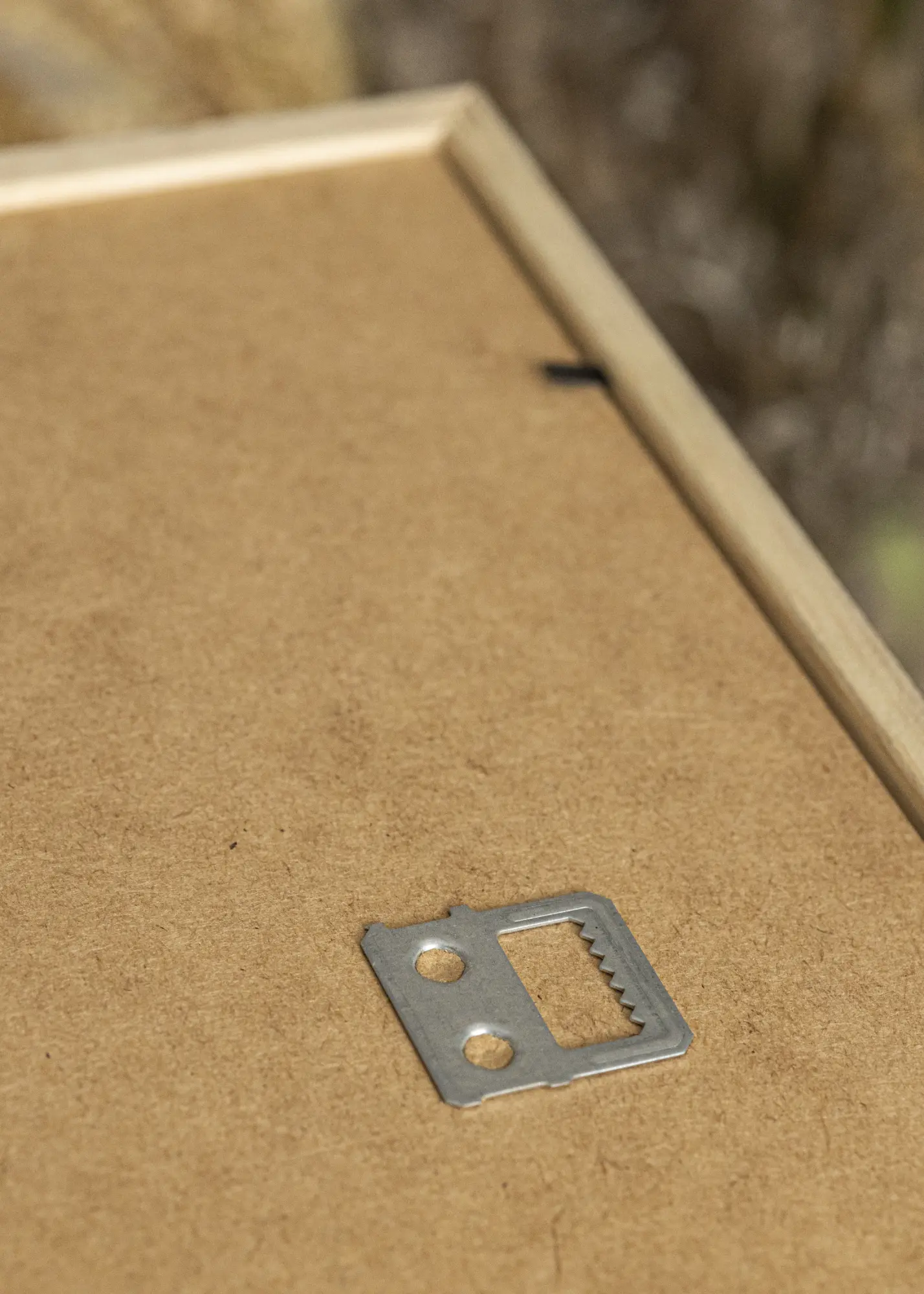Okvir je opremljen s praktičnimi kovinskimi obešalniki na zadnji strani, kar omogoča enostavno obešanje vaše slike bodisi vodoravno ali navpično, odvisno od orientacije motiva in potreb vašega prostora. Zunanje mere okvirja so 36,6x51,6 cm, kar ponuja velikodušno površino za prikazovanje vaše slike.