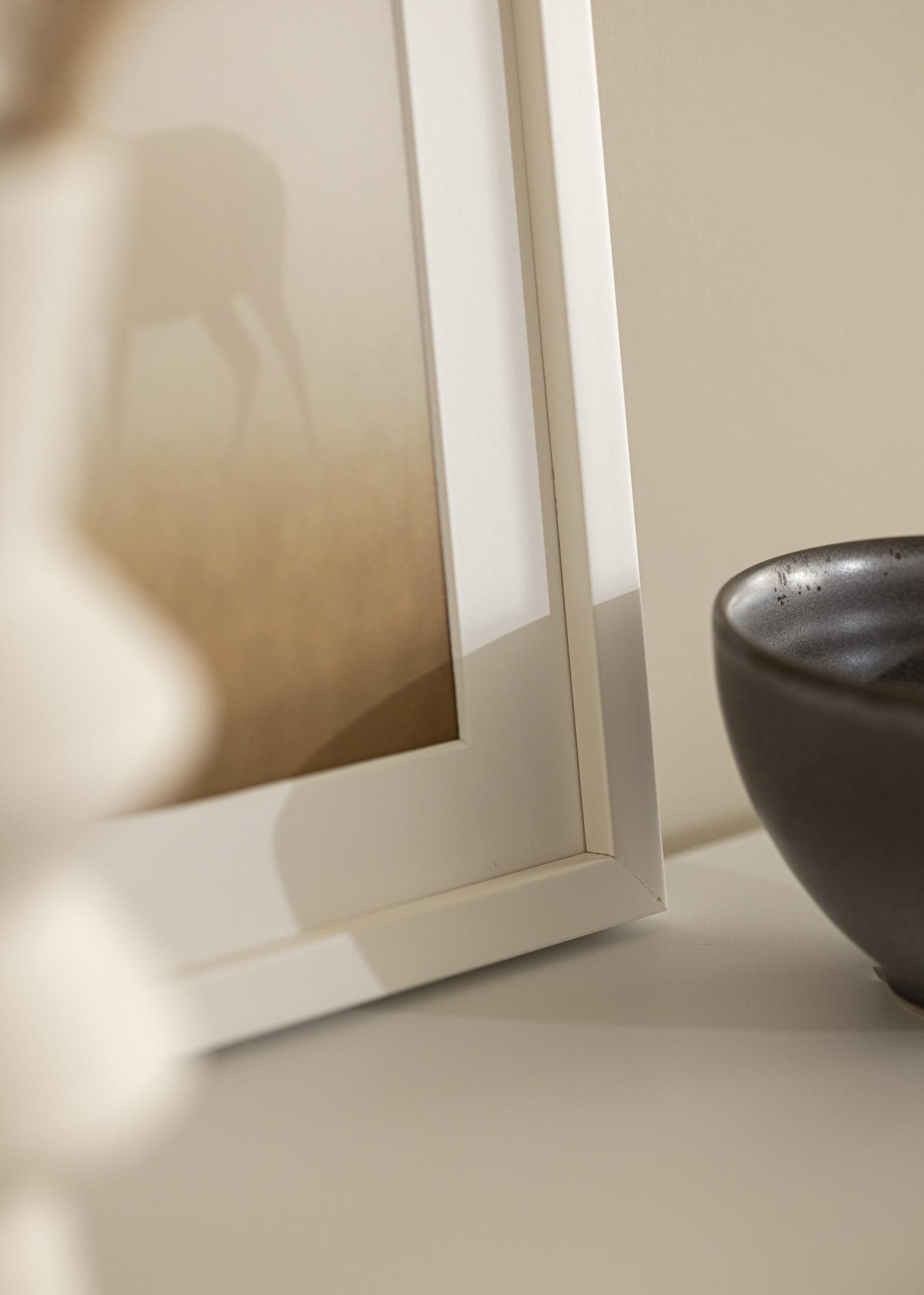 To je eleganten kakovosten okvir iz pobarvanega lesa. Letvica okvirja je globoka 22 mm, kar pomeni, da postane okvir opazen notranji detajl, ki rahlo izstopa od stene. Bela odtenka dopolnjuje tako klasične kot moderne motive, ne da bi ukradla pozornost slikam.