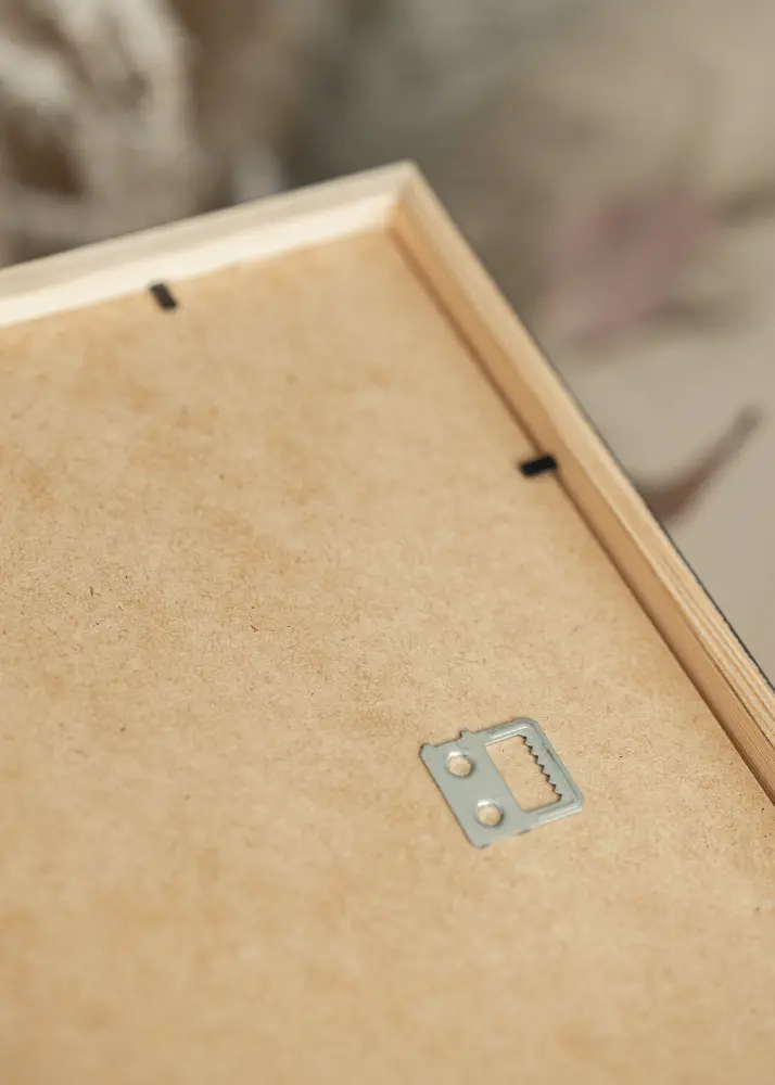 Okvir je lahko nameščen na steno tako v pokončnem kot tudi v ležečem položaju, prav tako pa se enako dobro podaja sam na steni kot v kombinaciji z drugimi okvirji. Na zadnji strani je hrbtni del iz HDF-materiala, ki ga na mestu držijo majhne sponke. Da vstavite svoje motive, upognete sponke in odstranite hrbtni del.