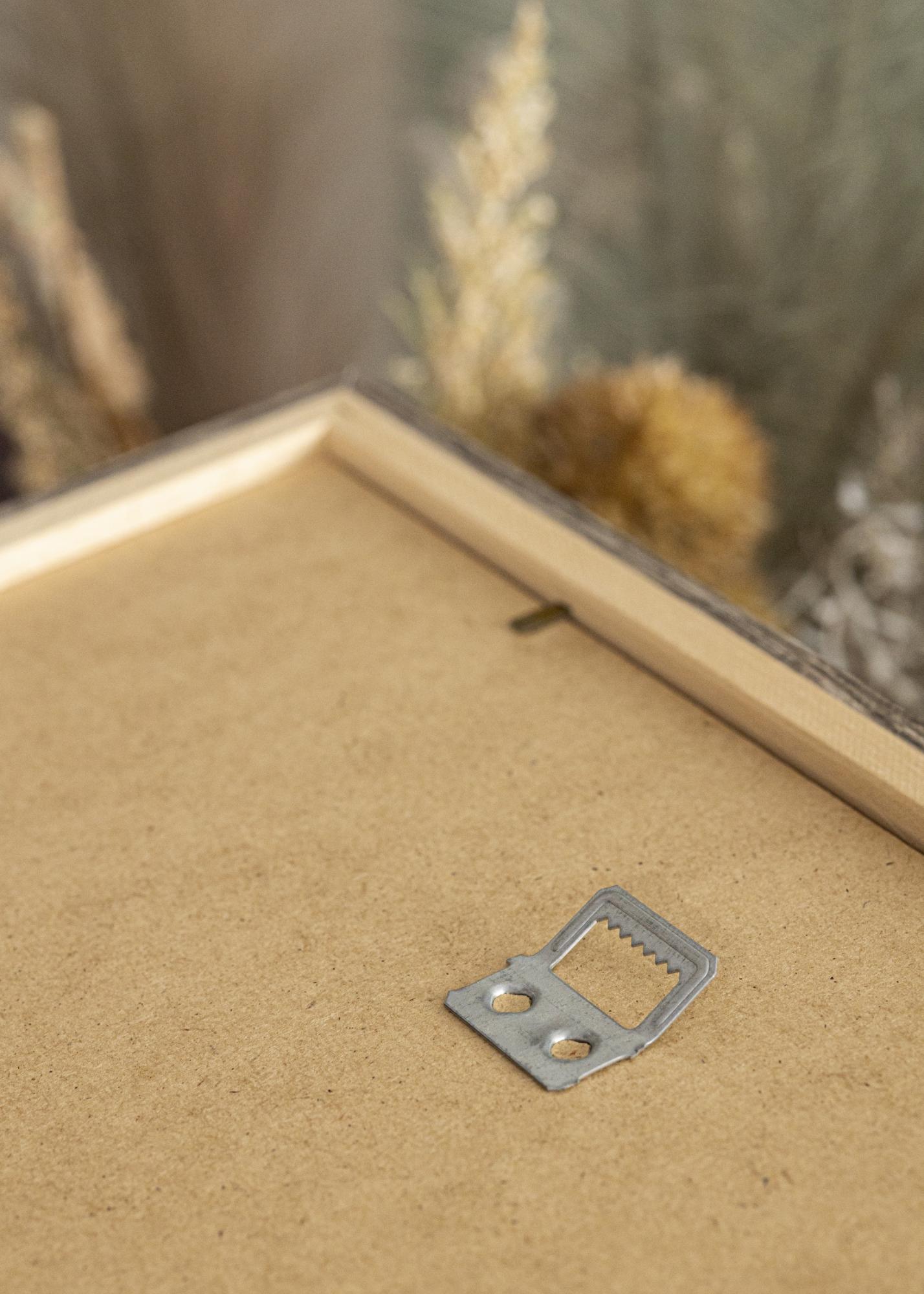 Ta okvir za slike ni le eleganten, temveč tudi praktičen. Na zadnji strani je opremljen z kovinskimi obešalniki, kar omogoča enostavno namestitev v vodoravni ali navpični položaj, odvisno od vašega prostora in oblikovne vizije. Globina okvirja 14 mm daje izrazit profil, ki pritegne pozornost gledalca.