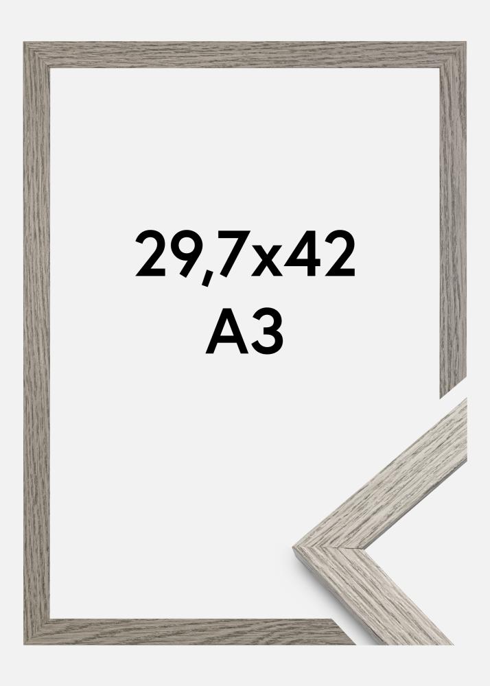 Podarite svojim plakatom in umetninam eleganten okvir z našim elegantnim okvirjem za fotografije v sivega hrasta. Z dimenzijami 29,7 x 42 cm (A3) je popoln za standardno velikost tiskovin in diplom. Okvirjeva 20 mm široka letvica zagotavlja diskretno, a izrazito obrobo vaši umetnini, medtem ko 14 mm globok profil dodaja sofisticirano globino.