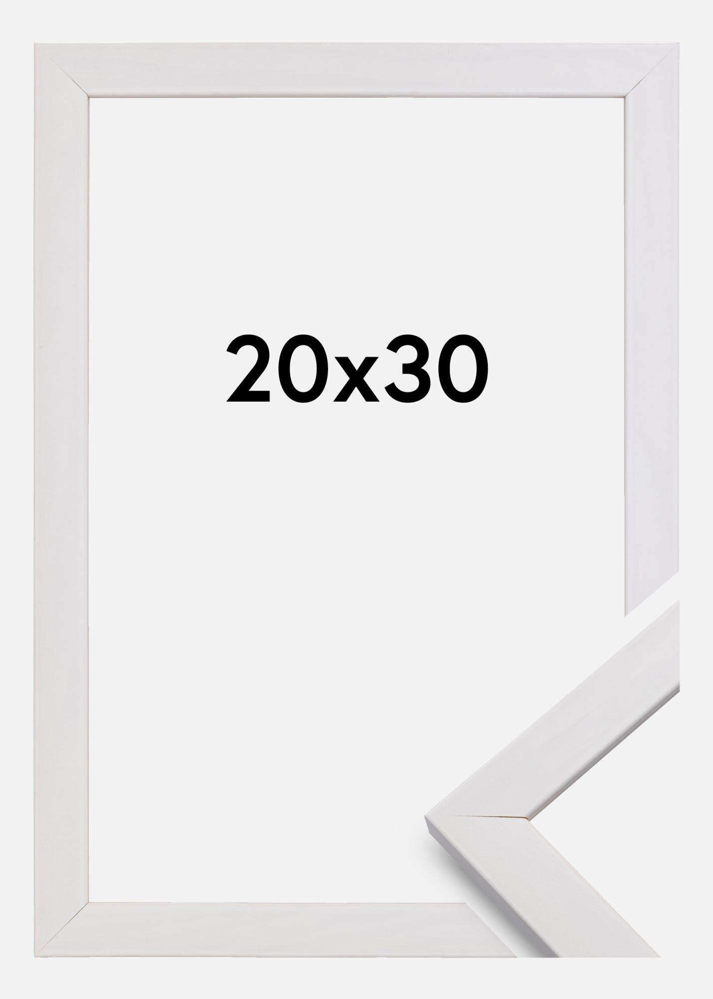 Eleganten Bela daje eleganten vtis s svojo široko belo profilno širino 20 mm. Popolna izbira, ko iščete širok moderen bel lesen okvir, ki vašim uokvirjenim slikam omogoča svetel in zračen videz. Eleganten Bela je zelo primerna na primer za slike poroke.