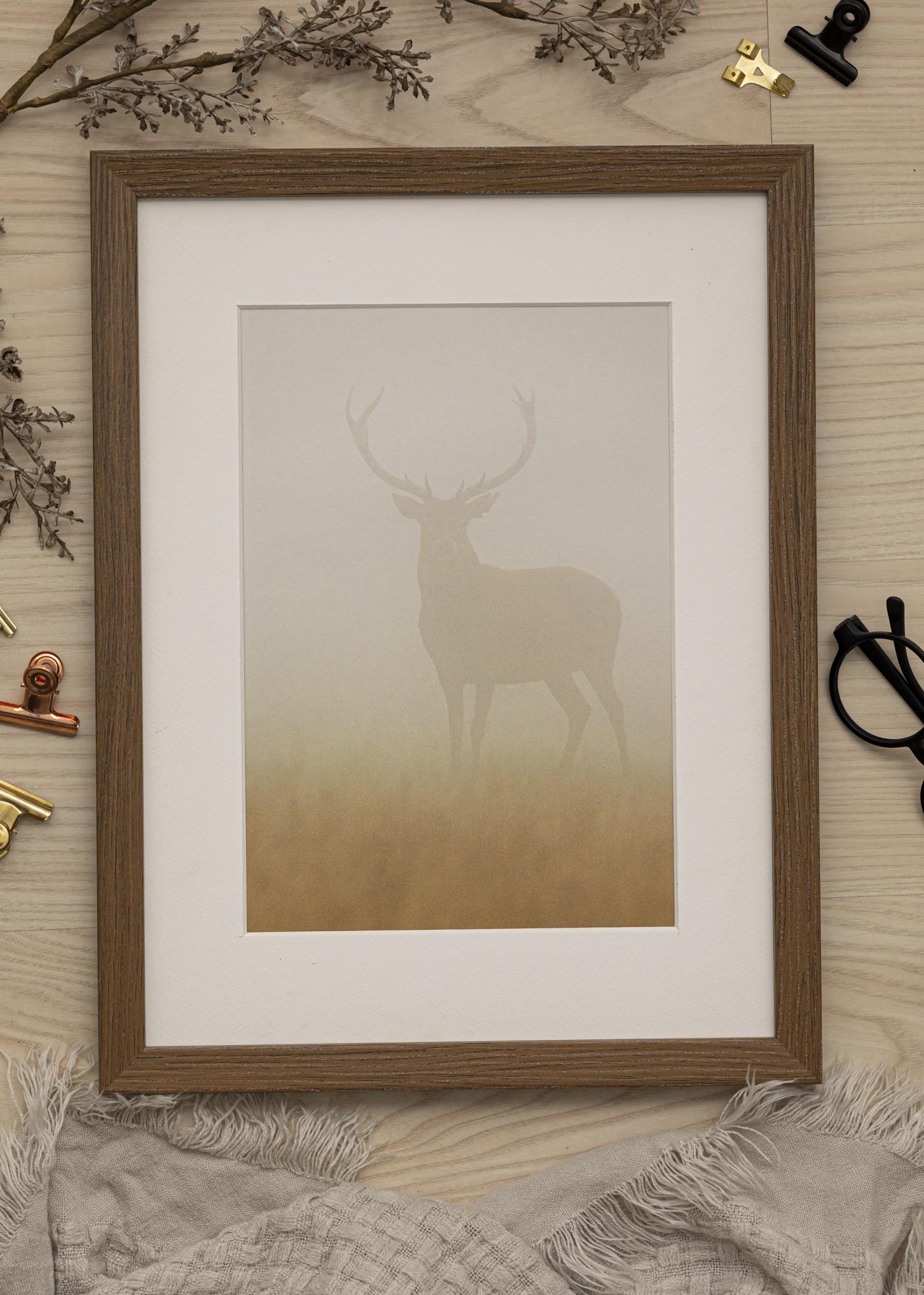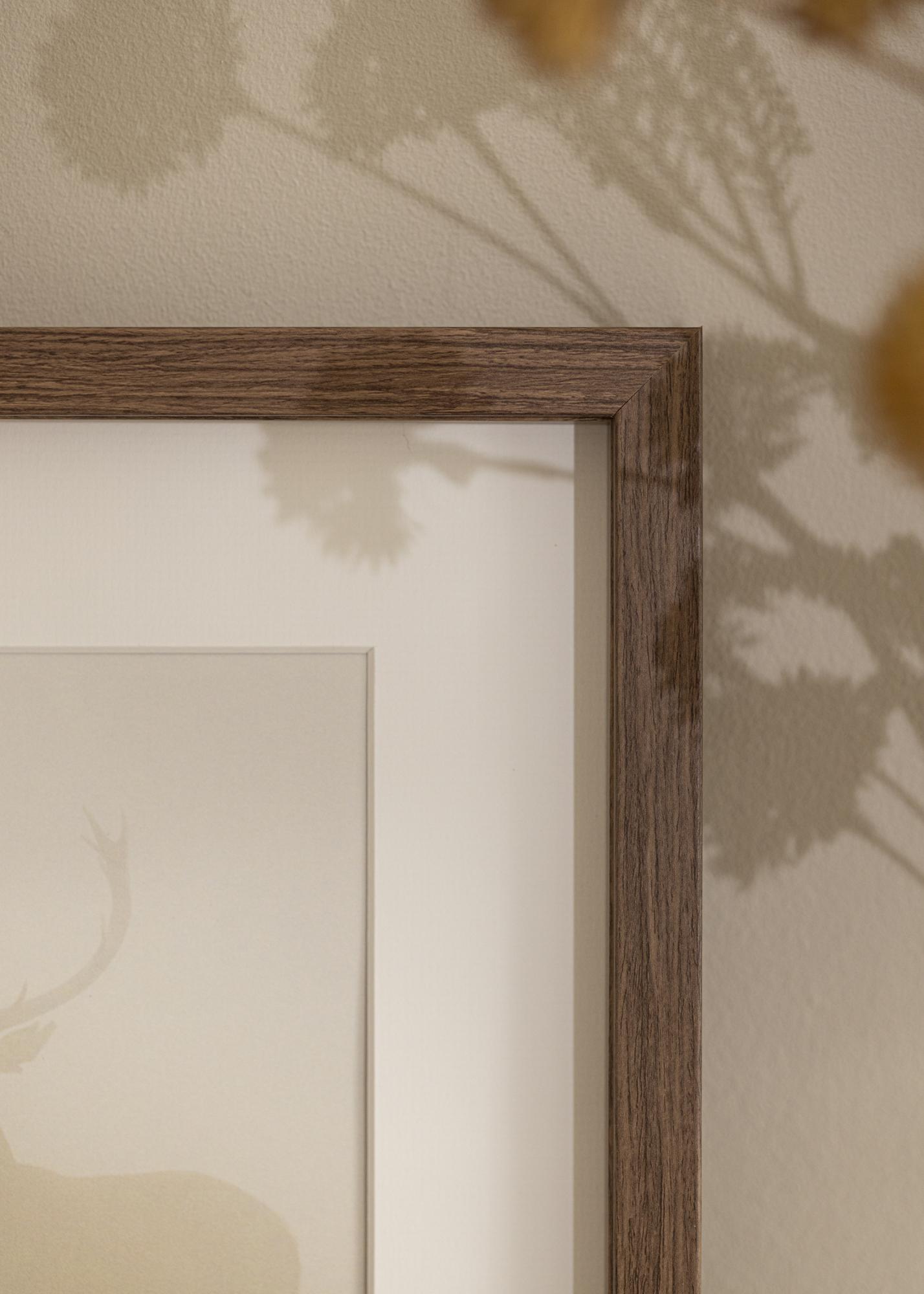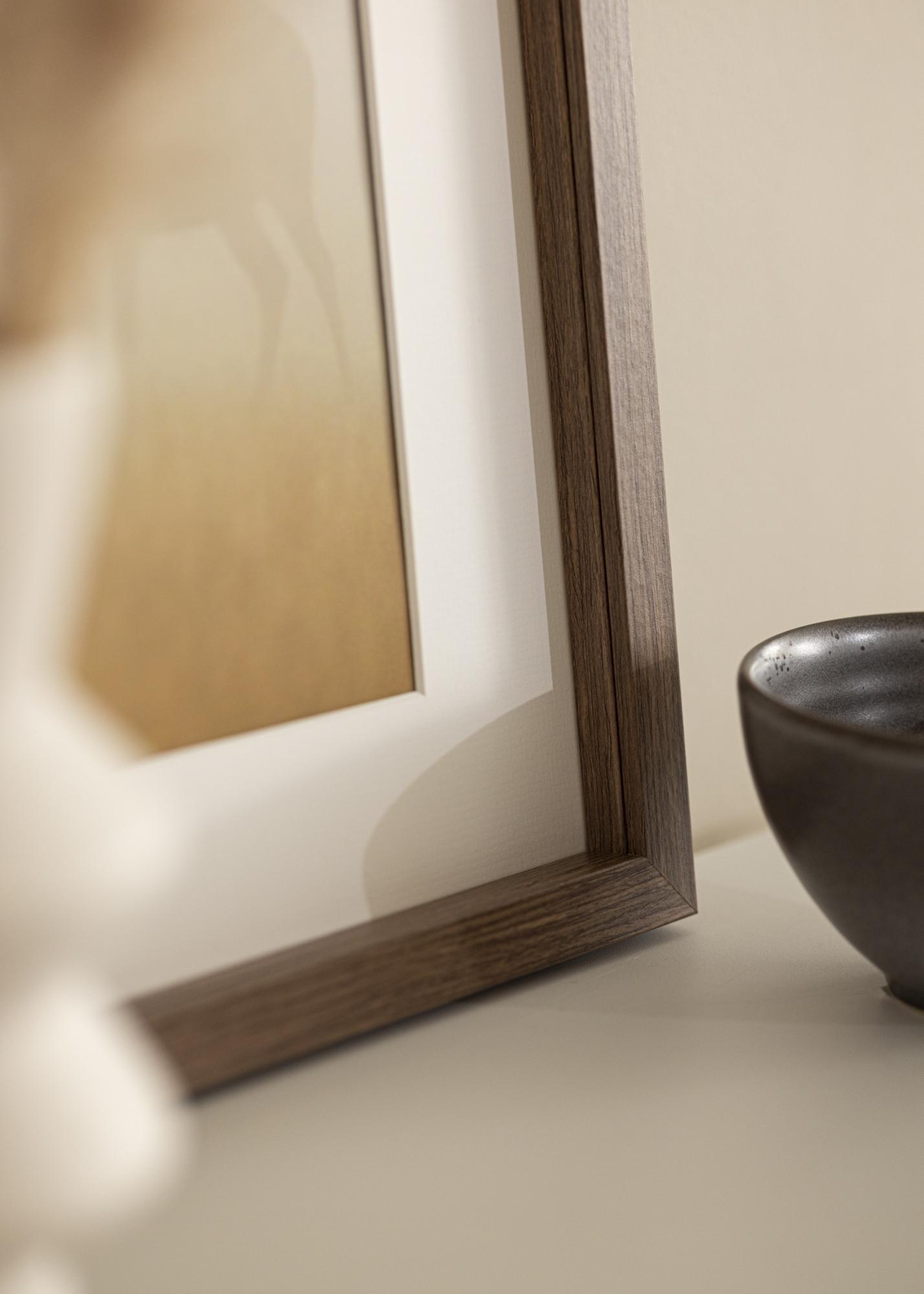 Eleganten okvir s teksturirano rjavo leseno površino in globino kar 30 mm. Okvir vključuje tudi distančnik, ki omogoča enostavno uokvirjanje drugih predmetov, kot na primer nogometnega dresa. To naredi "Elegant Box Brun" okvir s številnimi možnostmi. Okvir vključuje tudi bel passepartout.