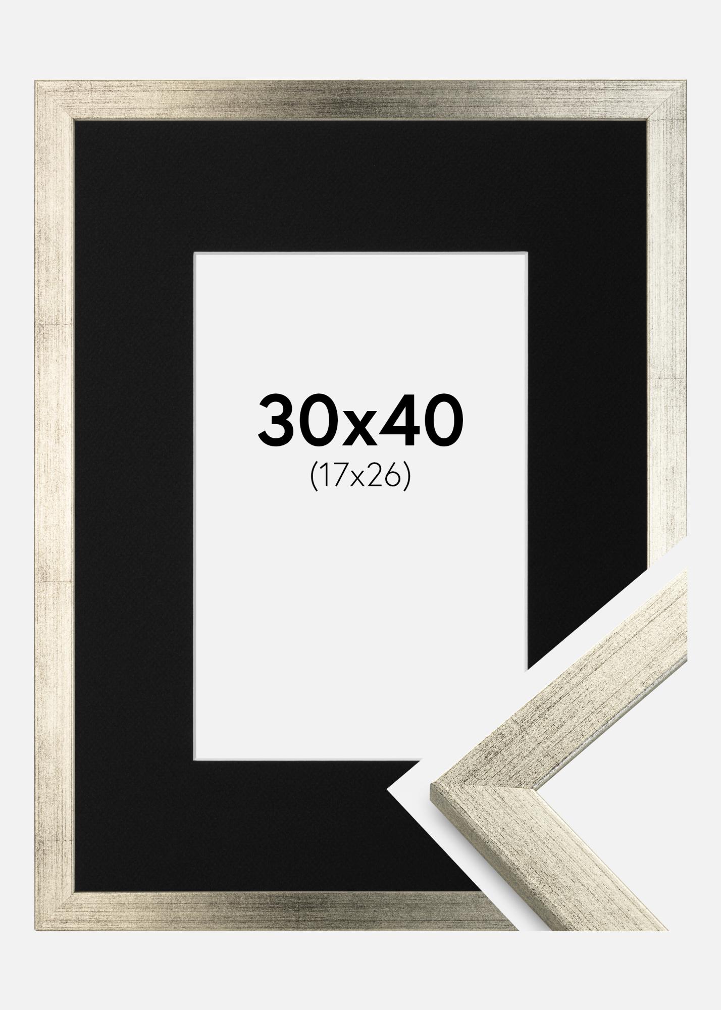 Okvir Eleganten Srebrna 30x40 cm - Paspartŭ Črna 18x27 cm