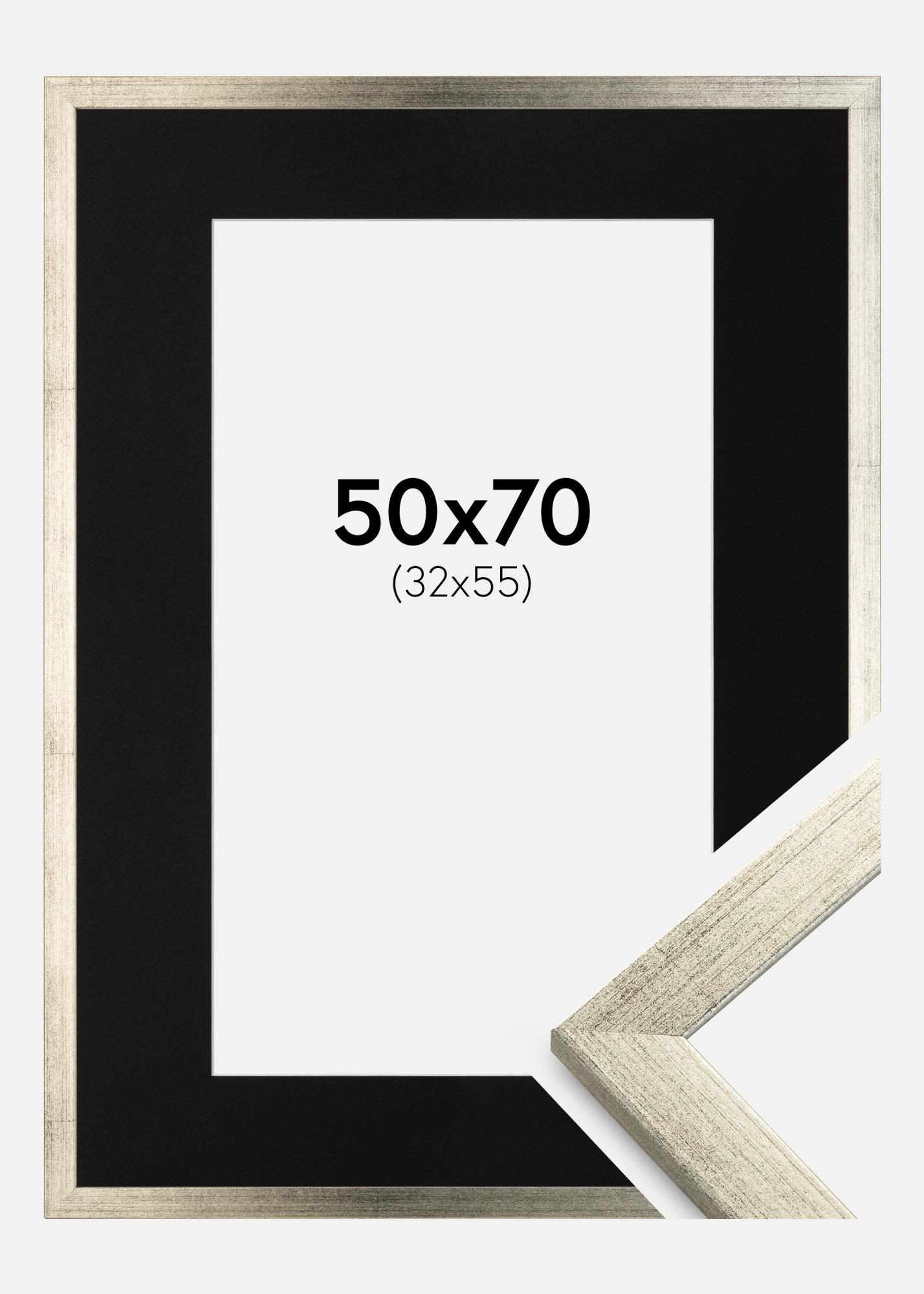 Okvir Eleganten Srebrna 50x70 cm - Paspartŭ Črna 33x56 cm