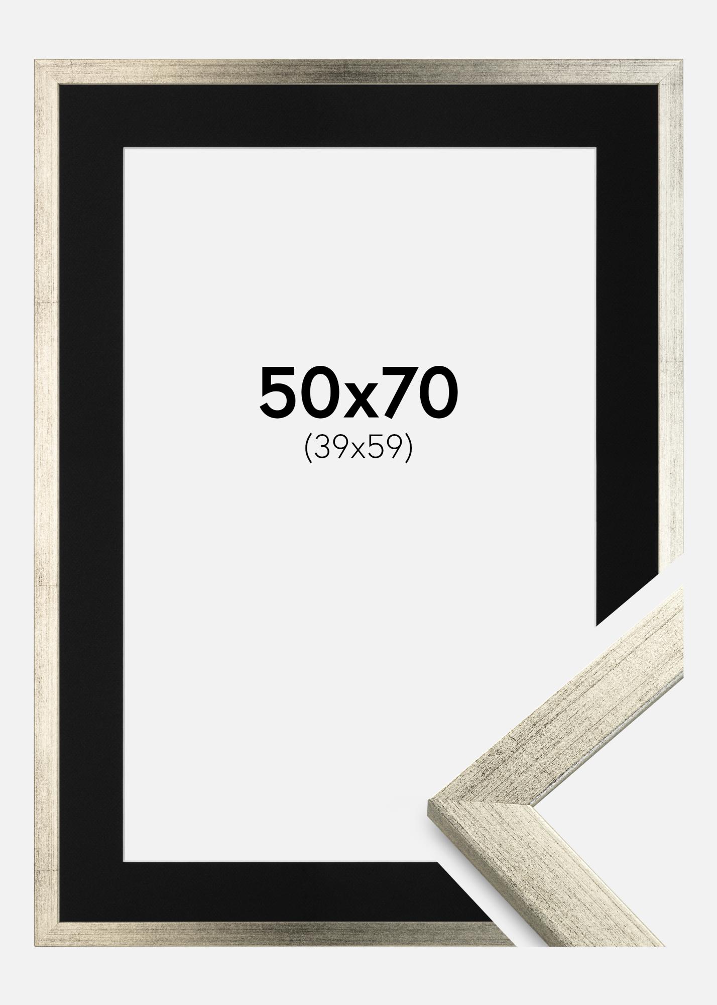 Okvir Eleganten Srebrna 50x70 cm - Paspartŭ Črna 40x60 cm