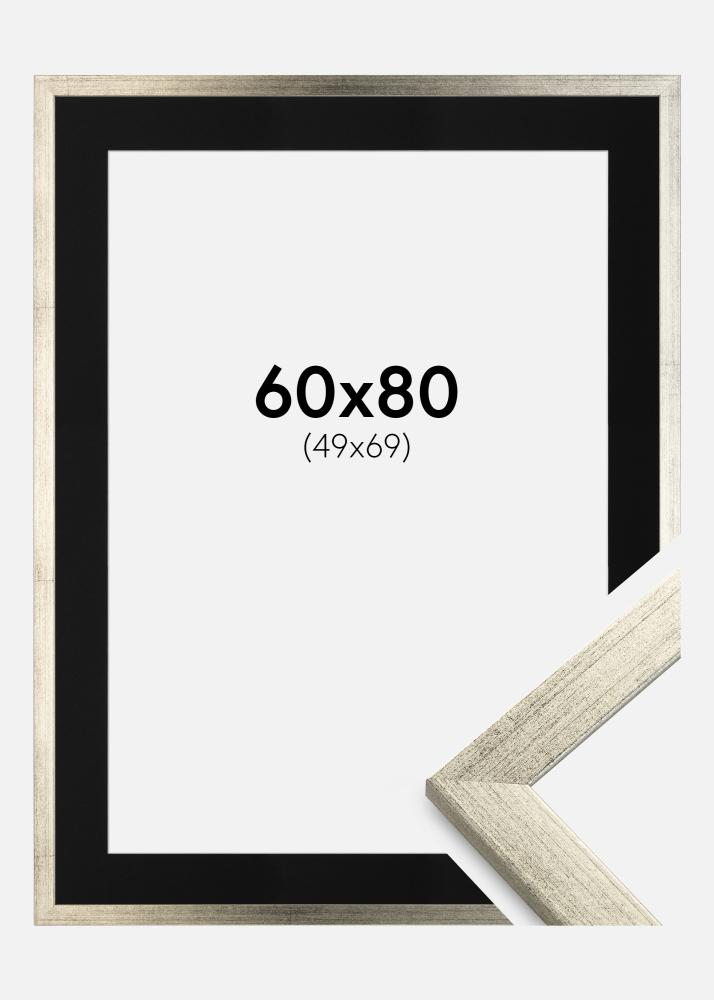 Okvir Eleganten Srebrna 60x80 cm - Paspartŭ Črna 50x70 cm