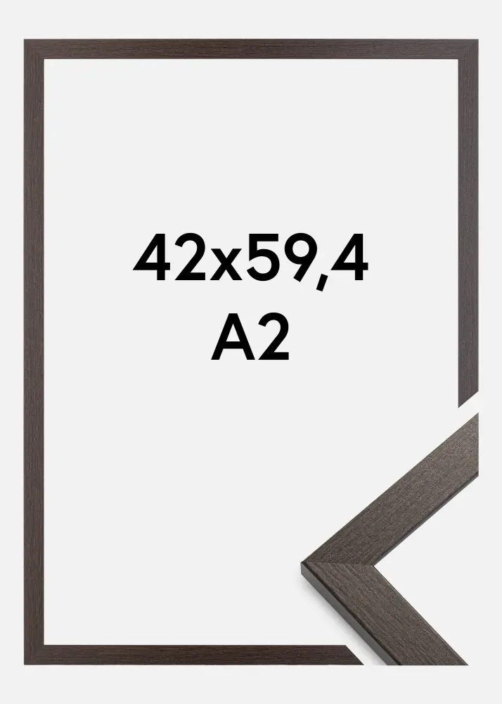 To je kakovosten okvir iz temno rjavega lesa, ki je podoben trdni leseni wenge. Letvica okvirja meri 20 mm v širino in 14 mm v globino, te dimenzije naredijo ta okvir robusten in stabilen okvir za fotografije, ki elegantno uokviri vaš motiv. Na zadnji strani okvirja so stenske zaponke, ki omogočajo, da sliko obesite tako pokončno kot ležeče. Okvir je izdelan iz bora in ima pravo steklo. Eleganten Wenge je na voljo v več različnih velikostih, od katerih ta meri 42 x 59,4 cm in je primeren za fotografije velikosti A2.
