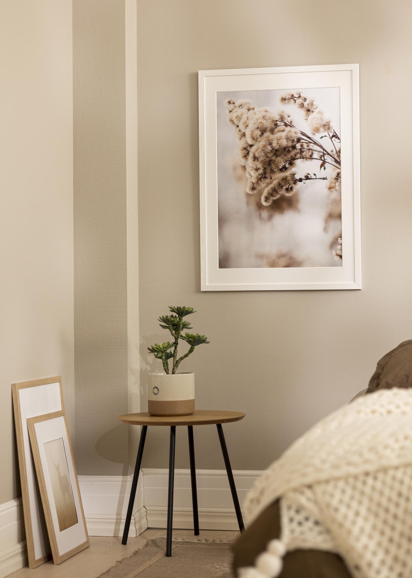 Elegantna White Oak je bel lesen okvir, ki je na voljo v različnih velikostih. Okvir je izdelan iz bora in ima pravo steklo. Tirnica okvirja meri 20 mm v širino in 14 mm v globino. Na hrbtni strani so stenski nosilci za pokončno in ležečo obešanje. Bel klasičen lesen okvir se enako dobro prilega podeželskemu domu kot modernemu. Zaradi svoje elegantne zasnove lahko ta okvir za slike kombinirate z veliko različnimi plakati! Ta okvir je primeren za motive v velikosti 50x70 cm.