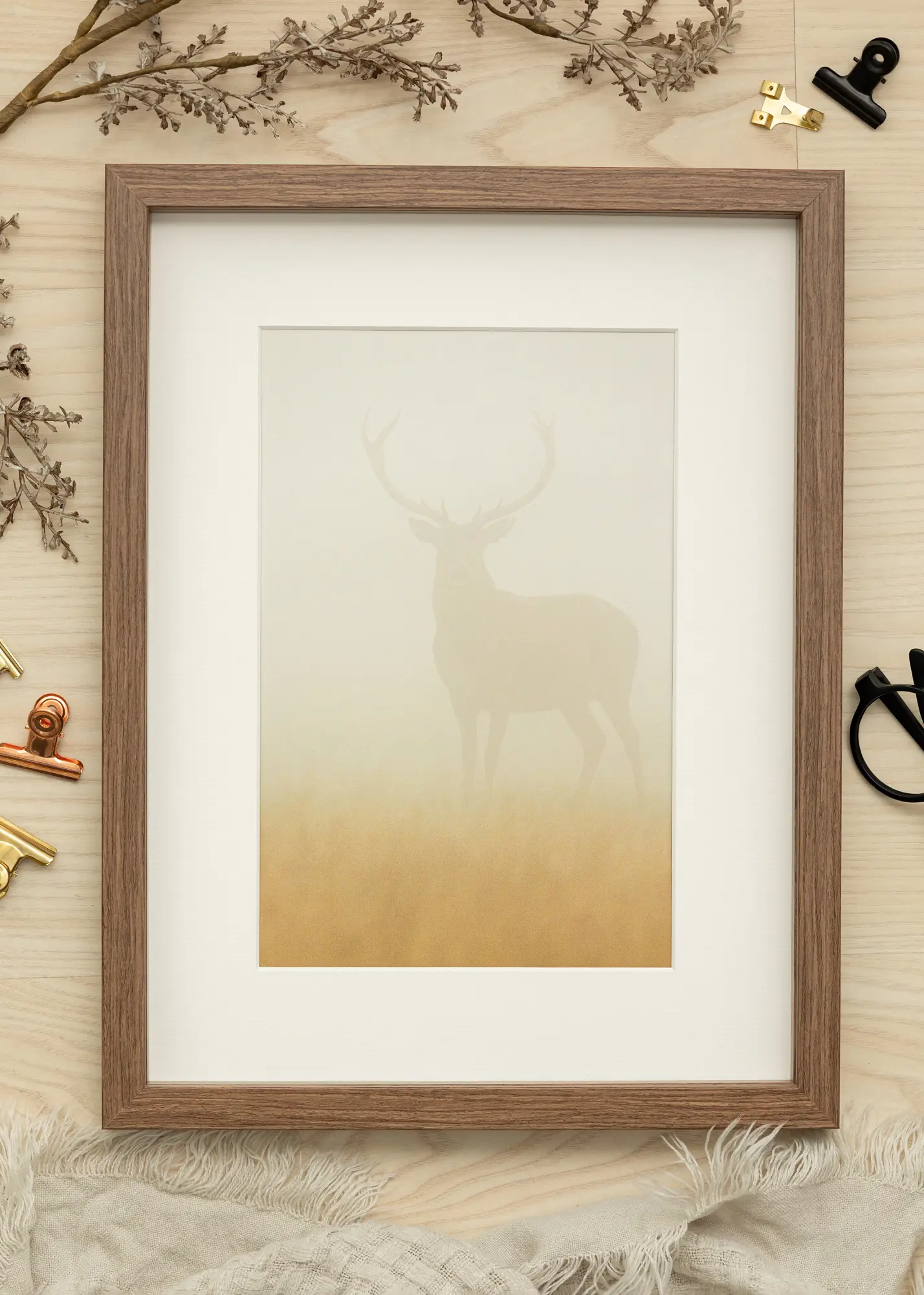 Okvir ima eleganten navznoter ukrivljen okvirni profil, ki je širok 20 mm in globok 20 mm. Ima velikodušno globino utora 13 mm, tako da imate prostor, da svoje motive dopolnite z elegantno pasparto kartonom. Slika in pasparto karton se zlahka vstavita v okvir zahvaljujoč praktičnim upogljivim zatičem na zadnji strani, ki držijo zadnjo stran na mestu.