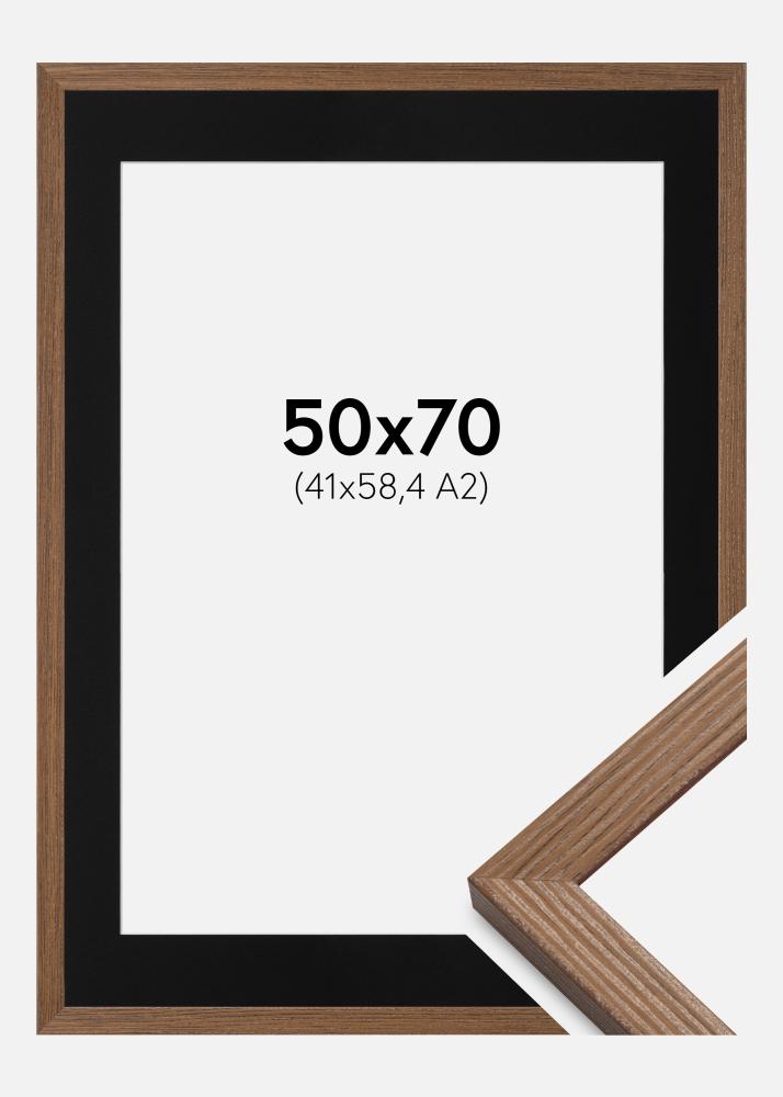 Doživite eleganco klasičnega rjavega okvirja, ki ga dopolnjuje črno pasparto, za ustvarjanje globokega kontrasta. Ta elegantna kombinacija je idealna za poudarjanje vaše slike velikosti A2 (42x59,4 cm) s prefinjenim dotikom. Gladka, mat površina okvirja ter njegova širina in globina 20 mm prispevata subtilen, a impresiven učinek vašemu umetniškemu delu.