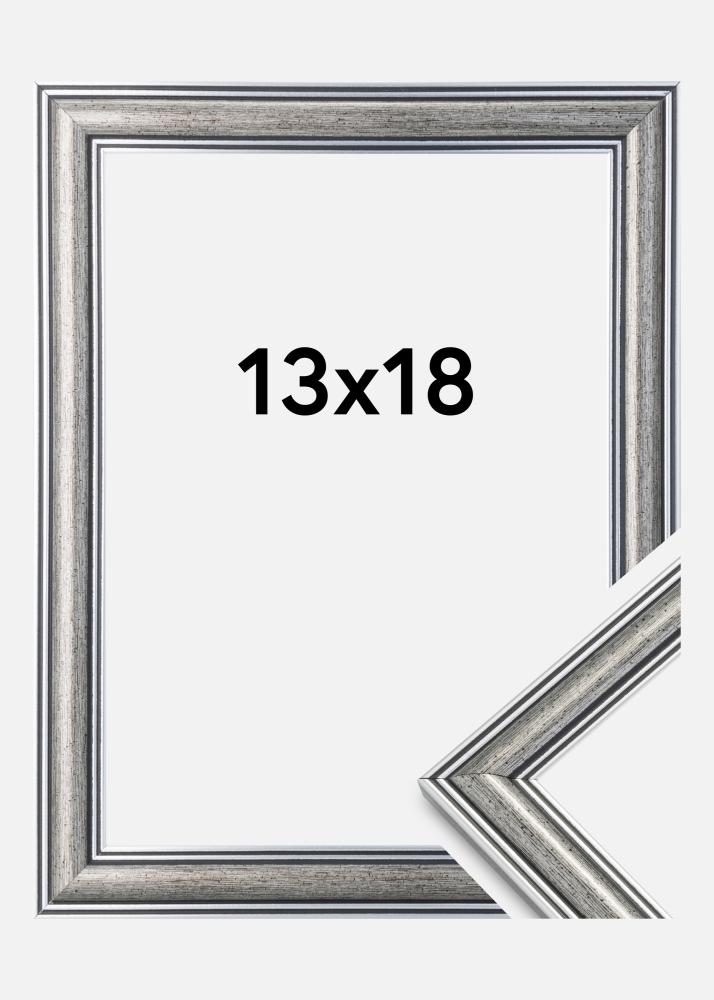 Frigg je srebrni okvir s črnimi črtami in črnimi pegami. Odlično se prilega, ko iščete široki tradicionalni srebrni okvir, ki ustreza različnim vrstam slik in okoljem.