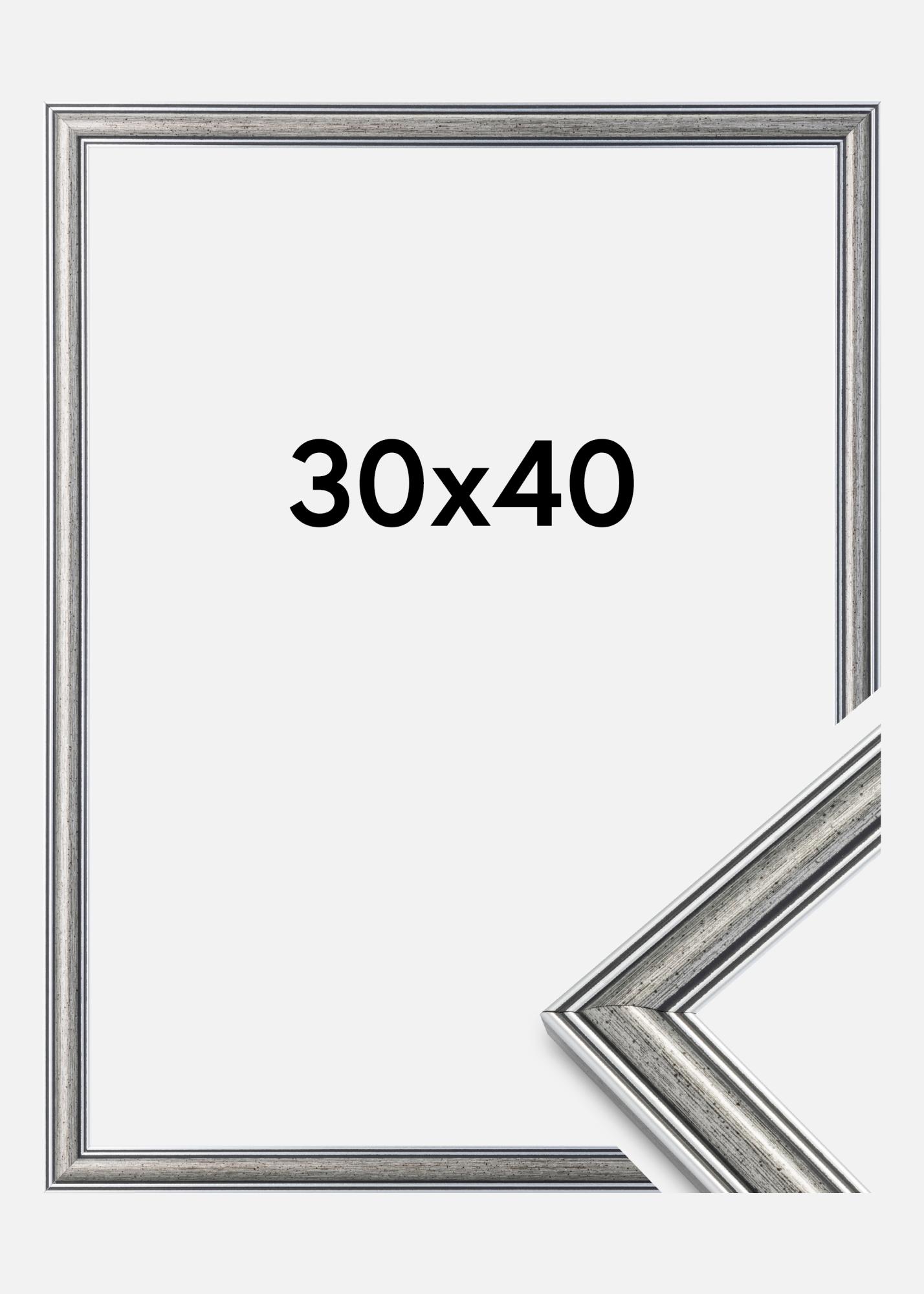 Frigg je srebrni okvir s črnimi črtami in črnimi pikčastimi vložki. Odlično se poda, ko iščete širok tradicionalni srebrni okvir, ki ustreza mnogim vrstam slik in okoljem.