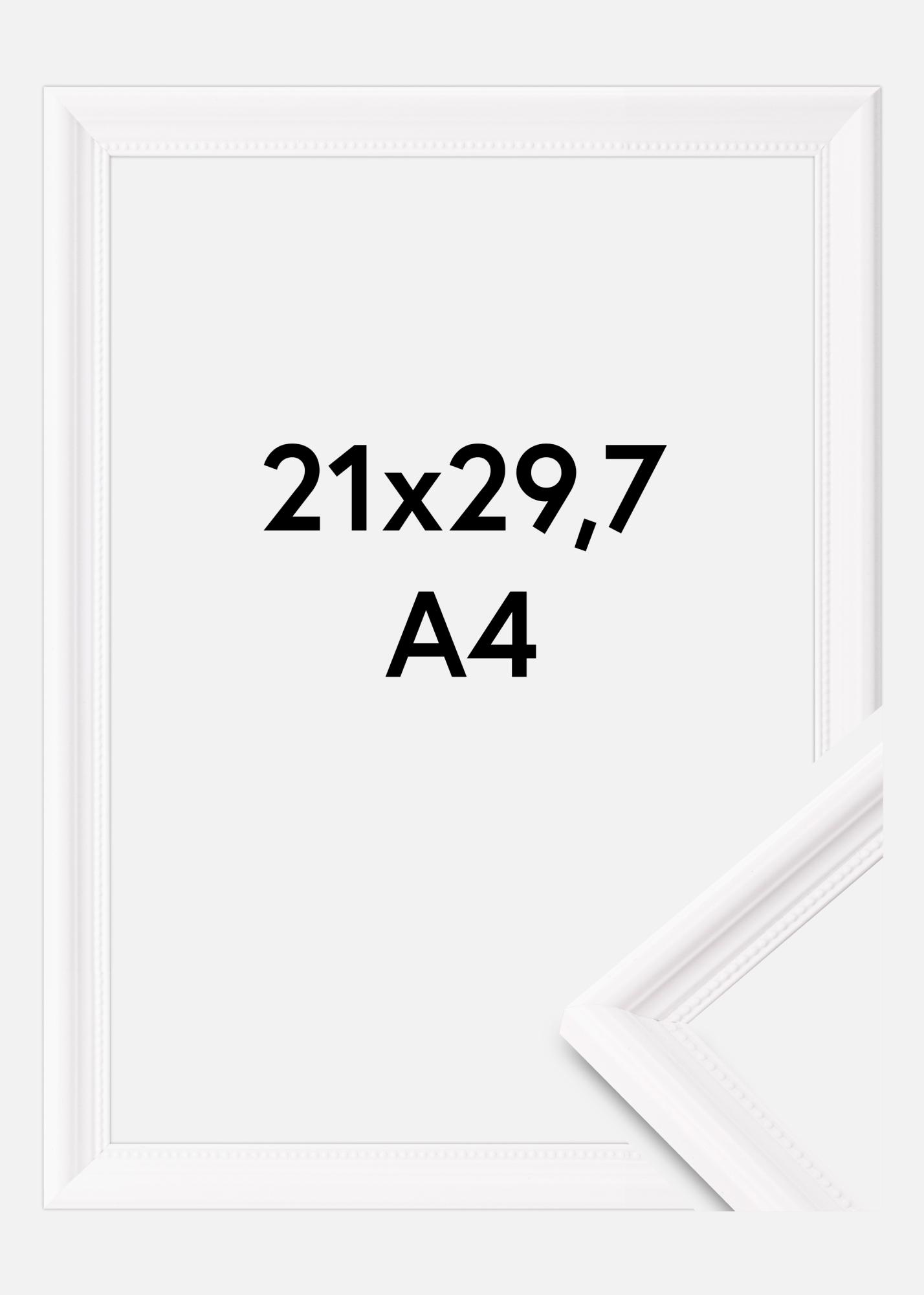 Ustvarite brezčasno stensko dekoracijo s tem elegantnim foto okvirjem v velikosti 21x29,7 cm (A4). Bela barva in profiliran okvir v retro stilu ustvarjata sofisticiran vtis, ki dopolnjuje vse vrste umetniških del ali fotografij. Z okvirno letev širine 20 mm in globino 17 mm, ta okvir za slike doda izrazit in privlačen rob vašemu najljubšemu motivu.