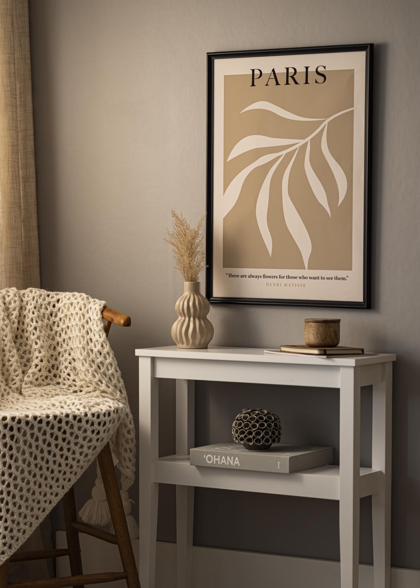 Okvir ima mat zaključek in belo passepartout. Opremljen je s kovinskim obešalnikom za tako horizontalno kot vertikalno obešanje.