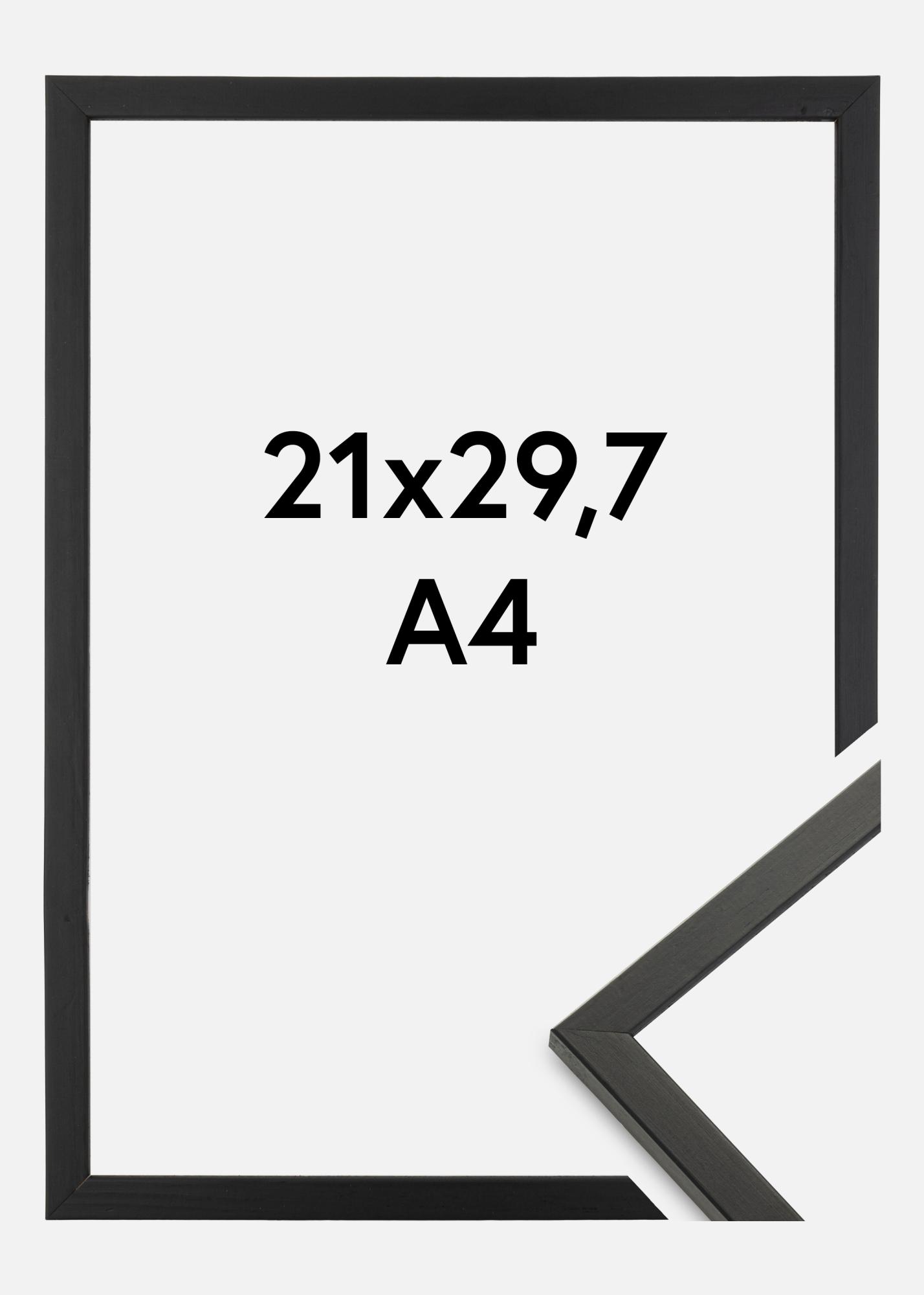 Klasičen črn okvir za slike iz temnega črnega lesa, ki ustreza motivom velikosti 21x29,7 cm (A4). Črni okvirji so klasika, ki se ujema z vsemi vrstami motivov in jih je enostavno kombinirati z drugimi barvami. Okvir ima pravo steklo, kar pri BGA cenimo, saj zagotavlja ostro sliko.
