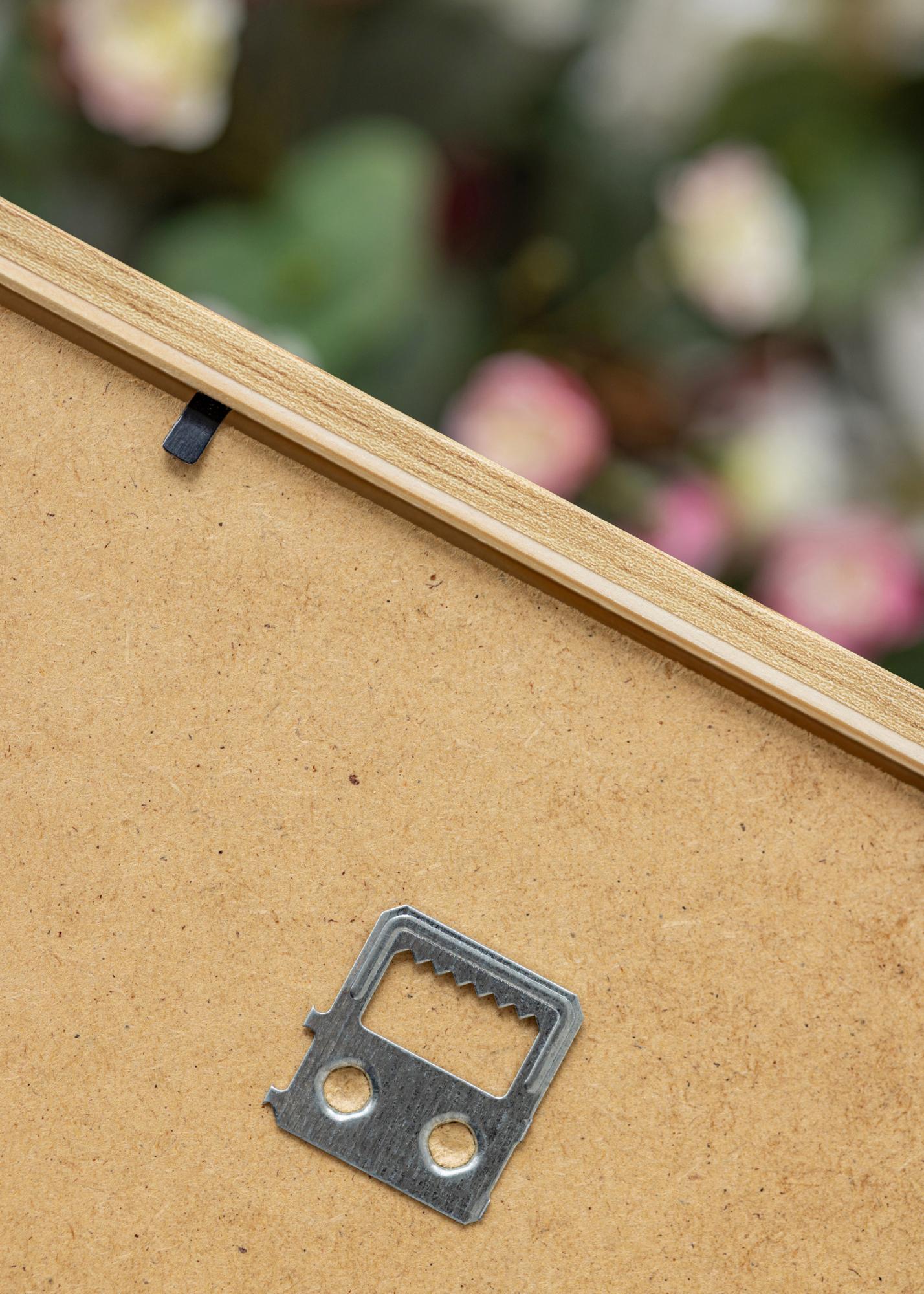 To je tanek okvir, ki je kot nalašč, ko želite, da je vsa pozornost na motivu! Okvirna letvica je globoka 13 mm in široka 13 mm, kar pomeni, da okvir ima gladko, a vseeno trdno obliko. Okvir je izdelan iz borovca in ima površino barve hrasta. Na zadnji strani so stenski nosilci za vodoravno in navpično obešanje.