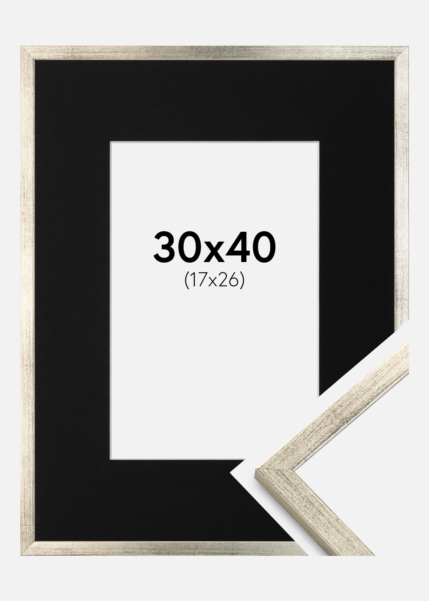 Okvir Galant Srebrna 30x40 cm - Paspartŭ Črna 18x27 cm