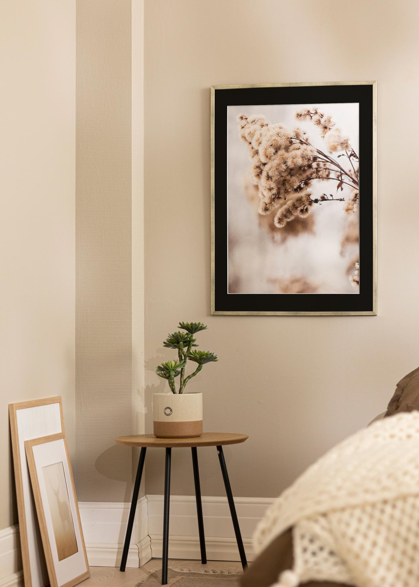 Svetleča srebrna površina na okvirju doda moderen pridih vaši notranji opremi in dopolnjuje različne barvne sheme in oblikovalske sloge. Črna passepartout ustvarja vizualni premor, ki pomaga poudariti sliko ter ji daje globino in kontrast.