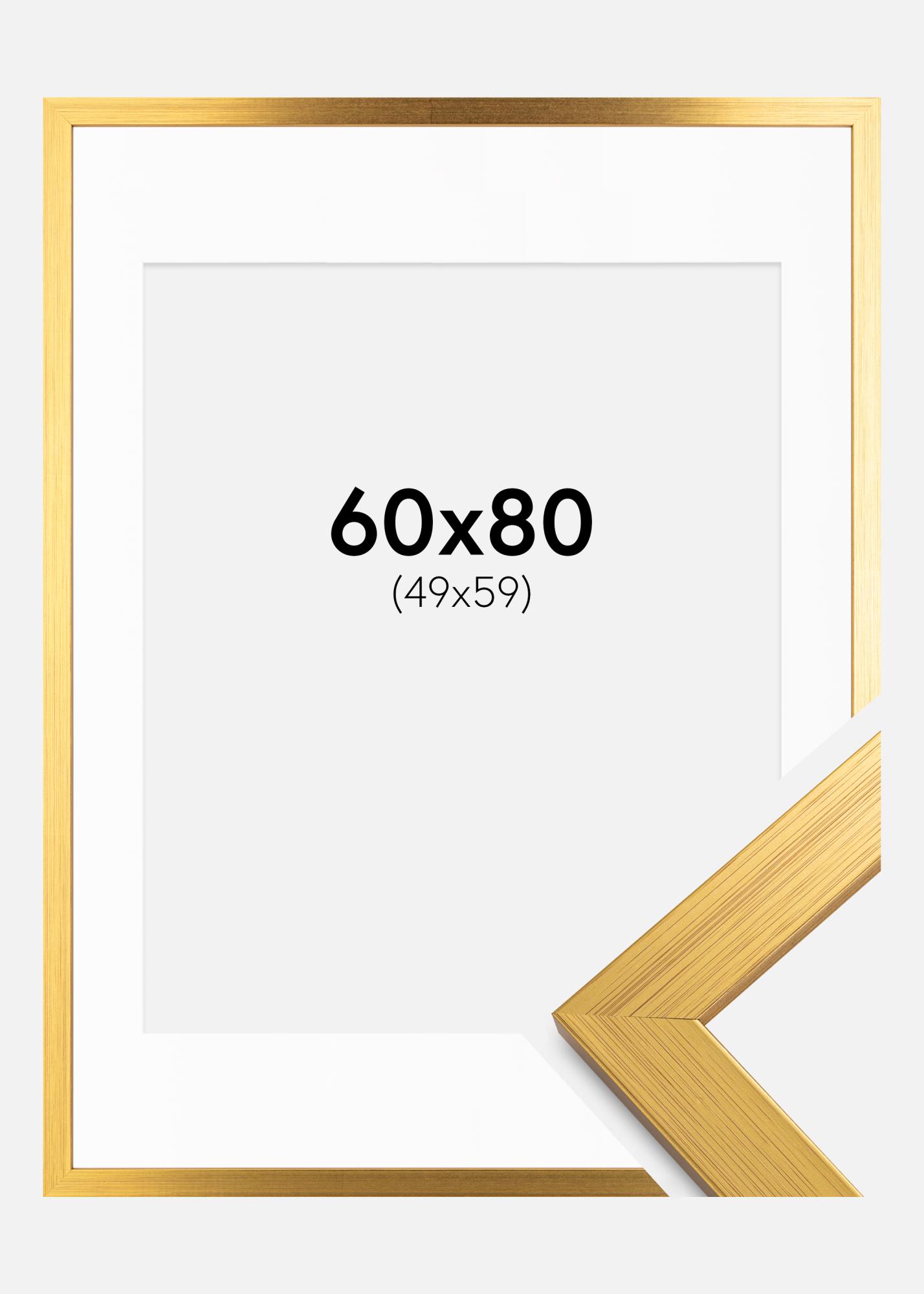 Povišajte svojo najljubšo sliko ali umetniško delo z elegantnim zlatim okvirjem z belim passepartoutom. Ta okvir za slike v mat zlati barvi zagotavlja luksuzno obrobo za vašo sliko velikosti 50x60 cm, medtem ko beli passepartout poudarja motiv in ustvarja vizualni prostor med umetniškim delom in okvirjem. Z zunanjimi merami 63,4x83,4 cm bo ta okvir za slike impozantna podrobnost na vaši steni.