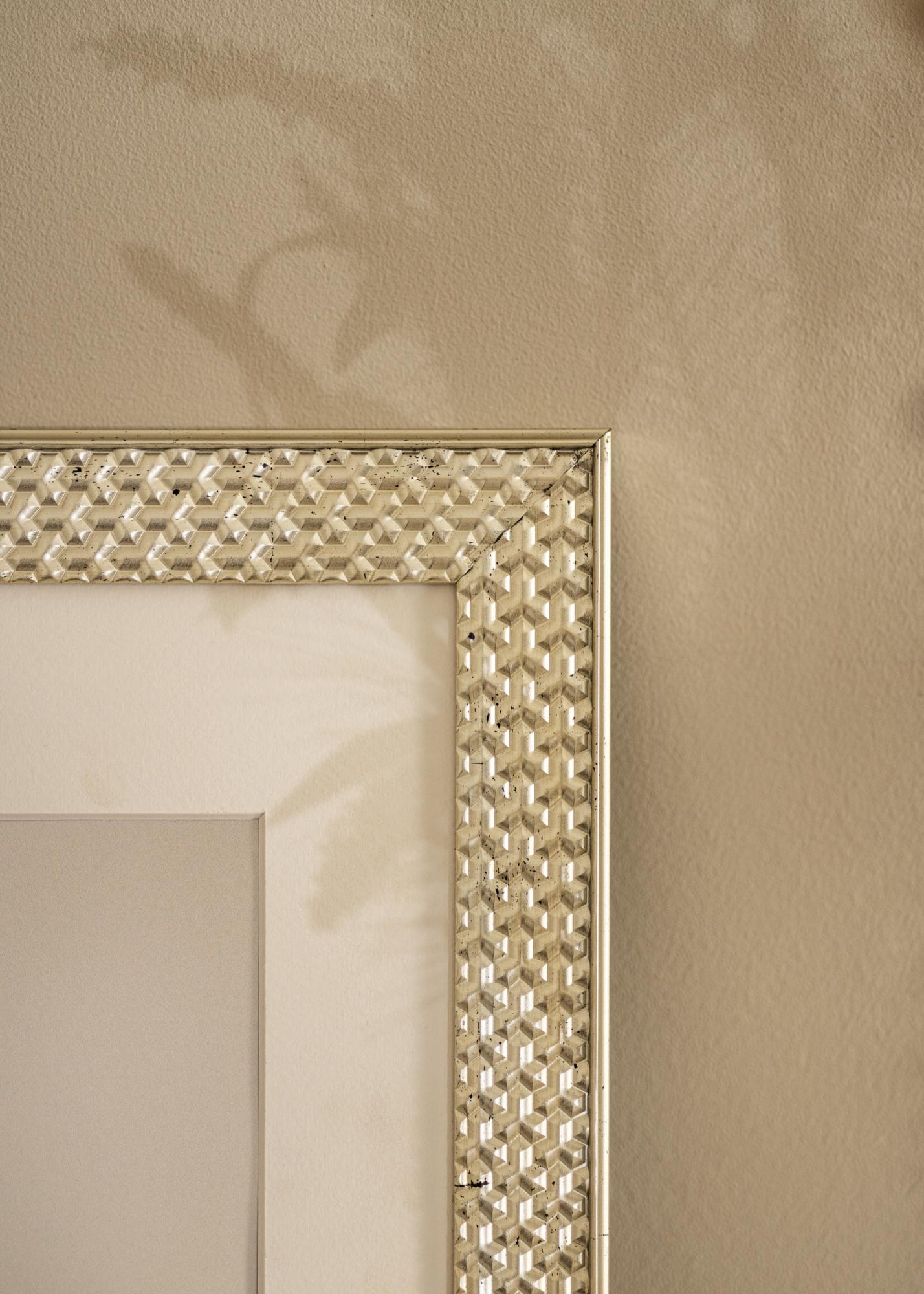 Z merami 21 x 29,7 cm (A4) ta okvir popolnoma ustreza standardni velikosti številnih umetniških del in certifikatov. Sijajna površina okvirja subtilno odseva svetlobo ter pomaga pritegniti pozornost opazovalca. Poleg tega je okvir opremljen z robustnim kovinskim obešalnikom na zadnji strani, kar omogoča enostavno obešanje v pokončnem in ležečem načinu.
