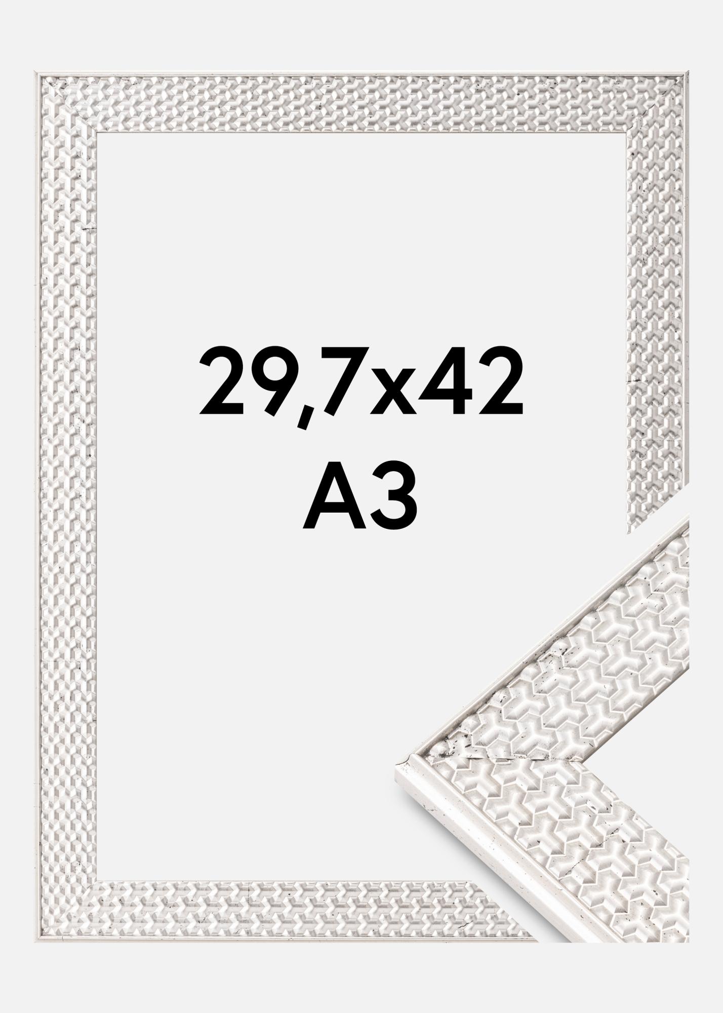 Okvir ima sijočo površino, ki subtilno odseva svetlobo, kar prostoru daje razkošen občutek. Poleg tega je okvir opremljen s praktičnimi kovinskimi obešalniki na hrbtni strani, kar omogoča enostavno obešanje tako v vodoravnem kot navpičnem formatu. Z dimenzijami 29,7 x 42 cm (A3) ta okvir za slike odlično ustreza standardni velikosti mnogih tiskov in certifikatov.