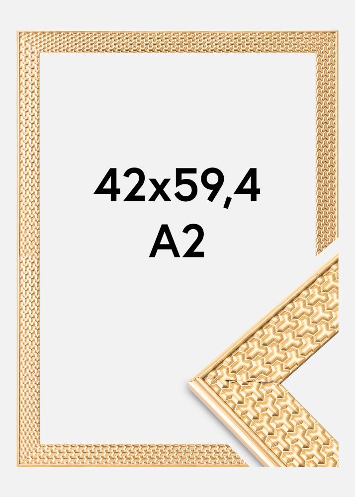 Ustvarite razkošen občutek v svojem domu s to elegantno 42x59,4 cm (A2) zlato okvirjem v retro slogu. S svojim sijočim videzom in izrazitim dizajnom bo ta foto okvir privlačen element na vaši steni. Široka okvirna letev z 35 mm zagotavlja močno prisotnost in dodaja globino vaši izbrani umetniški sliki ali fotografiji.