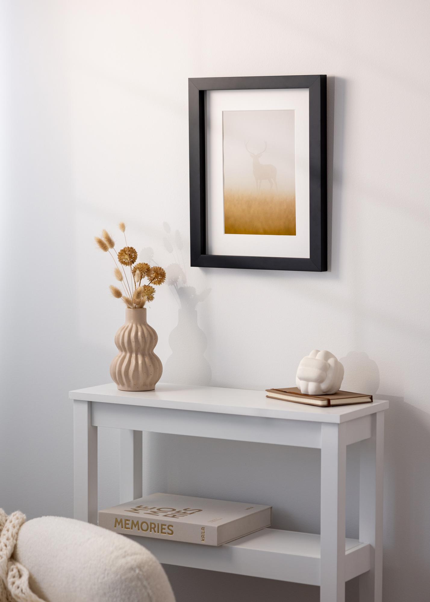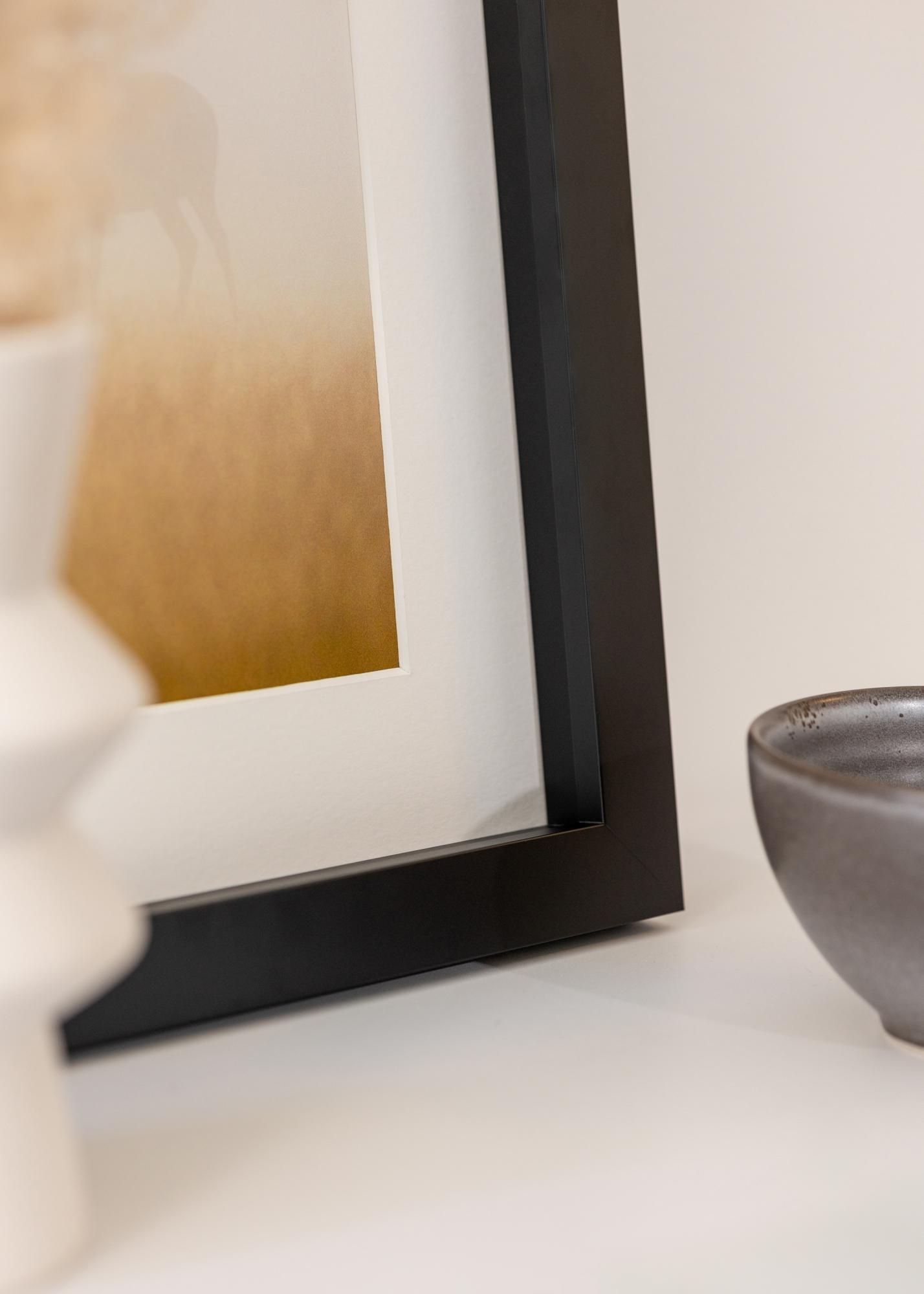 Okvir Hathor Črna je okvir za slike po meri, ki ga izdelujemo v naši lastni delavnici za okvirje, kar vam omogoča, da dobite okvir, ki se popolnoma prilega vašemu umetniškemu delu ali fotografiji. S svojo črno barvo in elegantnim dizajnom je stilski dodatek k vsem vrstam notranje opreme. Mat površina okvirja daje moderen občutek, ki poudarja motiv na okusen način.