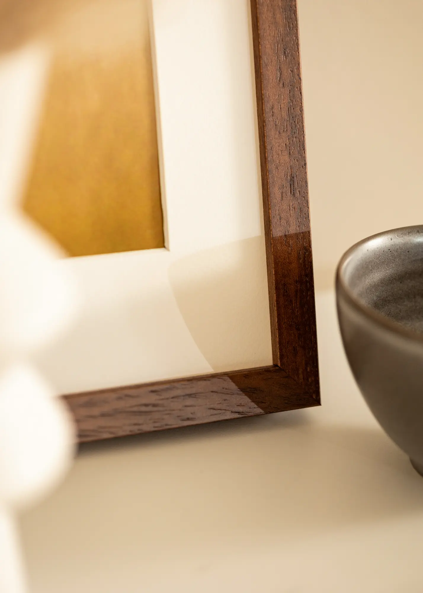 Okvir ima elegantno letvico, ki meri 19,6 mm v širino in globino 25 mm, kar daje izrazit in sodoben profil. Površina z vzorcem teaka daje avtentičen videz lesa, ki dopolnjuje različne stile notranje opreme. Da olajša obešanje, je okvir opremljen s praktičnimi kovinskimi obešalniki na zadnji strani, kar omogoča obešanje tako vodoravno kot navpično.