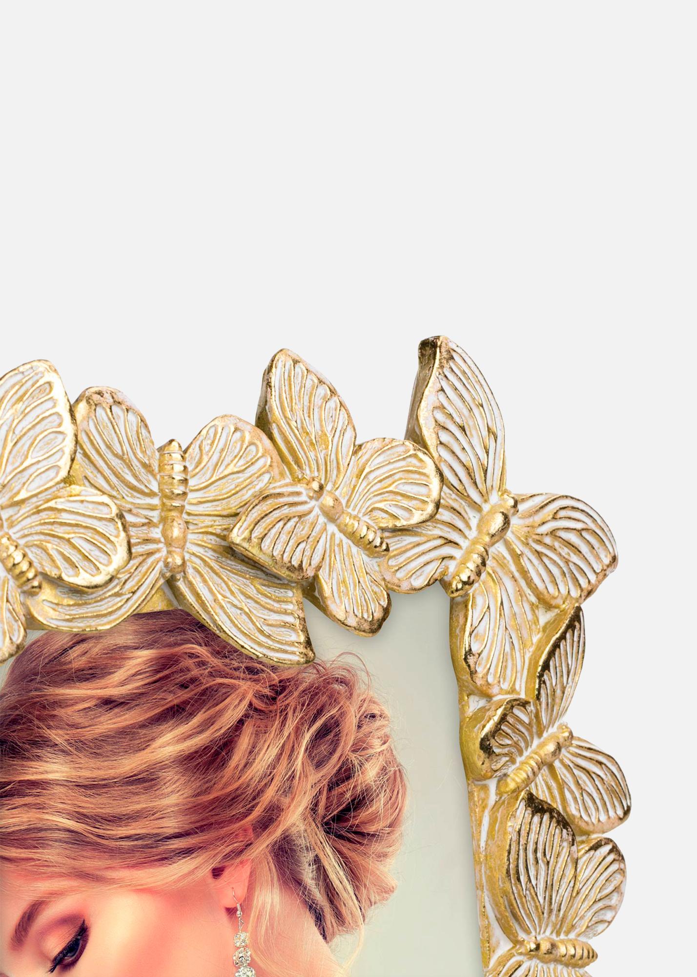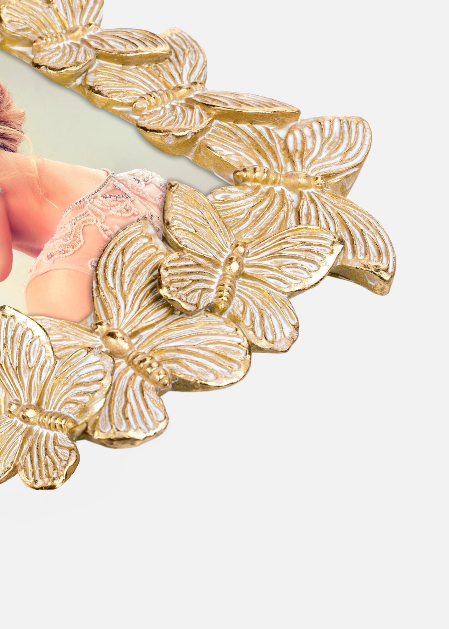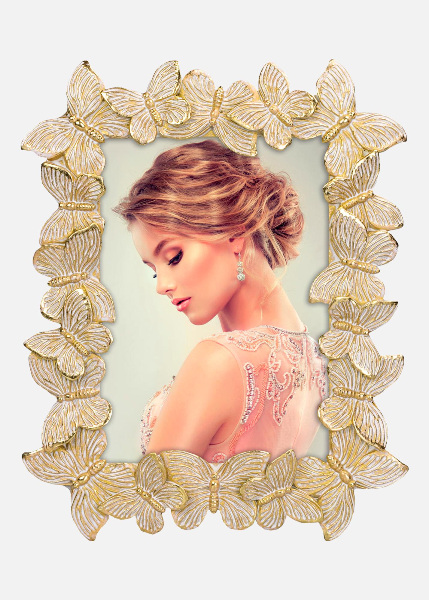 Odkrijte očarljivo lepoto naše portretne okvirje velikosti 13x18 cm, ki je pravi privlačnik za vaš dom. Ta edinstven okvir za fotografije je okrašen z detajlno profila okvirja z zlatimi in belimi metulji, kar daje igriv in eleganten pridih vašim najljubšim slikam.