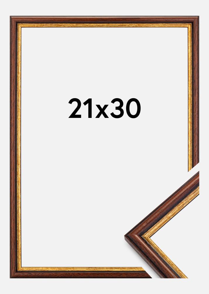 Odkrijte brezčasno eleganco z našim klasičnim okvirjem za fotografije velikosti 21x30 cm, ki izžareva občutek tradicije in prefinjenosti. Rjav odtenek dopolnjuje subtilen zlati rob, ki obdaja motiv in vašemu notranjemu oblikovanju doda pridih razkošja.