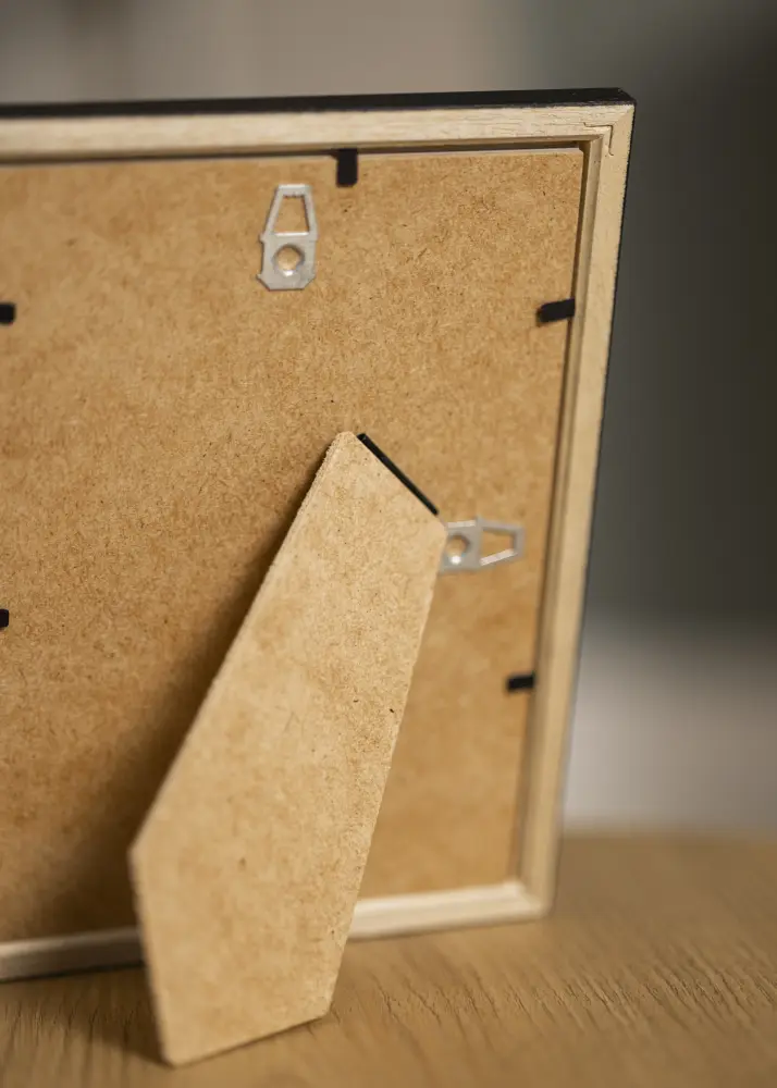 Okvir ni le stilno uokvirjanje, temveč je tudi praktičen s svojo matirano površino, ki zmanjšuje odseve in omogoča enakomeren prikaz vaše vsebine. Okvir je opremljen s kovinskimi obešalniki na zadnji strani, kar omogoča enostavno obešanje vaše slike vodoravno ali navpično, odvisno od orientacije slike in vašega osebnega prostora.