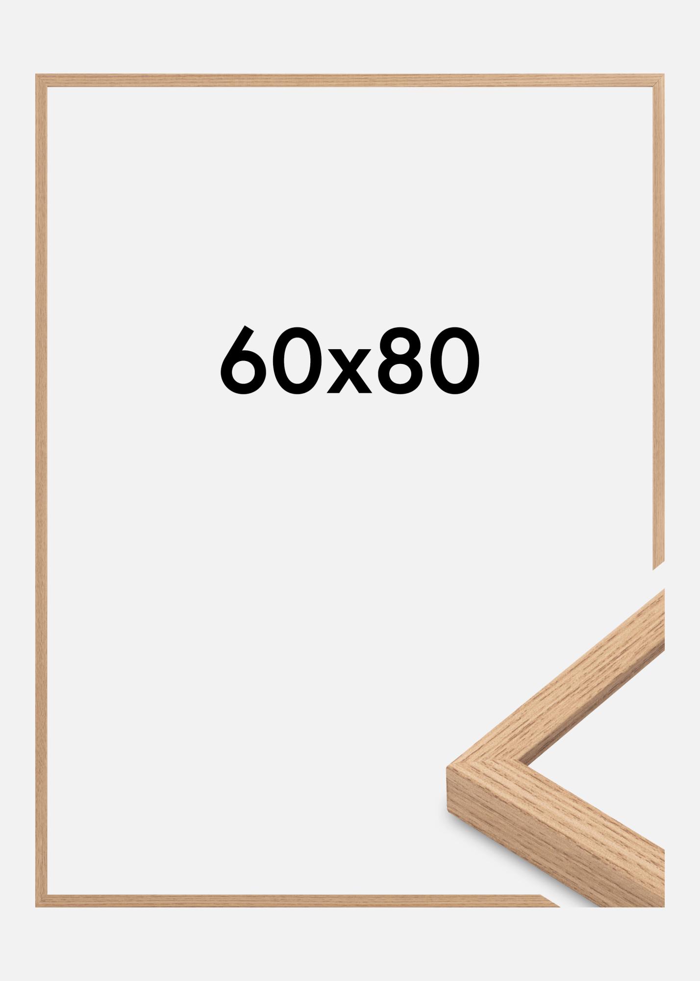 Okvir ima 12 mm široko letvico in globino 16 mm, kar mu daje stabilen in robusten občutek. Diskretna lesena struktura in lahka zrnasta struktura posnemata pravi hrast, kar ustvarja živahen in harmoničen vtis. Ostra, natančna vogala in gladka površinska obdelava prispevajo k dobro izdelanemu in premišljenemu izrazu, popolnemu za tiste, ki iščejo klasičen, a hkrati minimalističen videz.