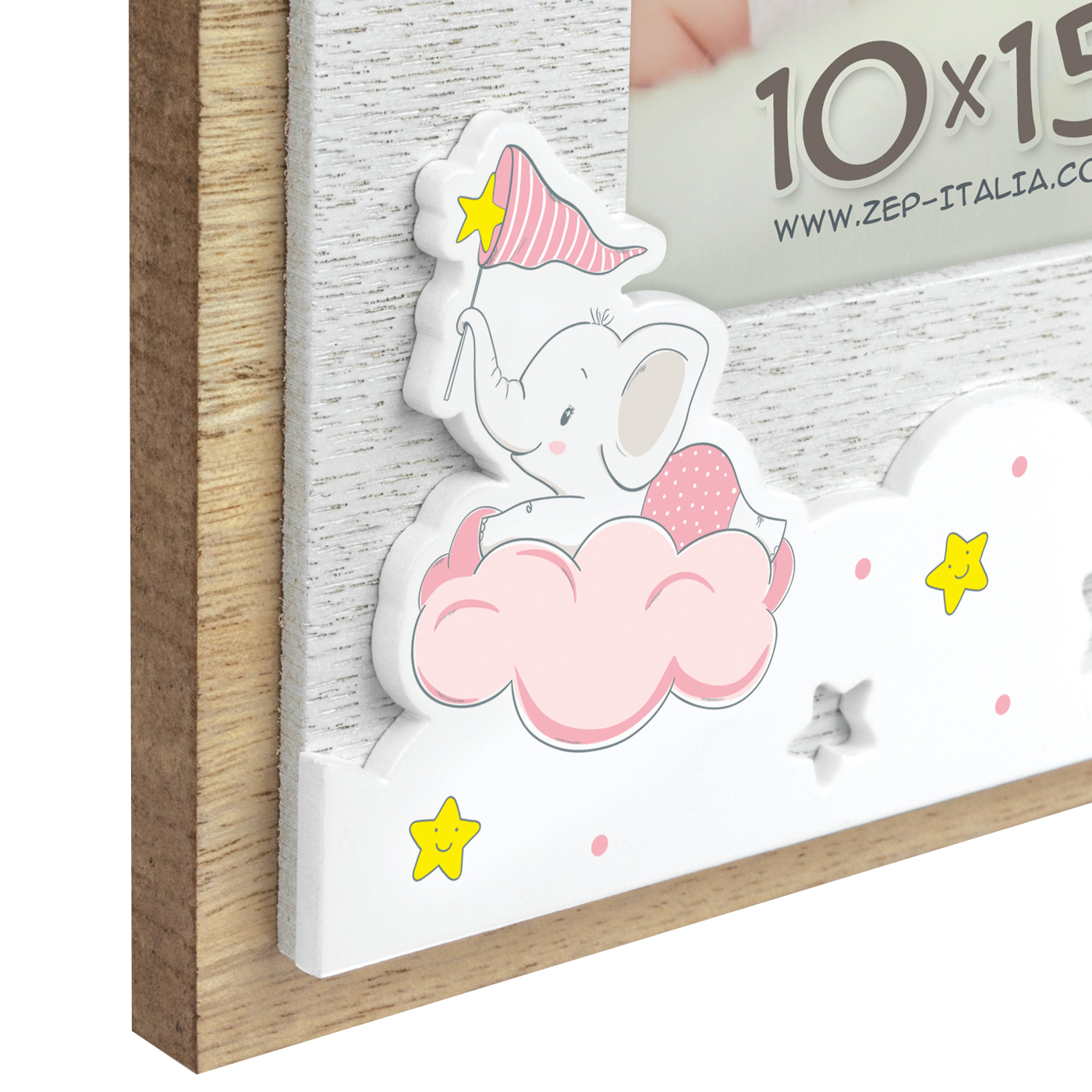 Preoblikujte svoj dom v osebno galerijsko steno s to očarljivo okvirjem za fotografije, ki poudarja male življenjske trenutke. Z dimenzijami 10x15 cm je popolna za ohranjanje spominov na najmlajše. Ta okvir je okrašen s čudovito otroško temo, vključno s simpatičnim slonom, rožnatimi vzorci in majhnimi zvezdami, ki skupaj ustvarjajo toplo in ljubečo atmosfero.