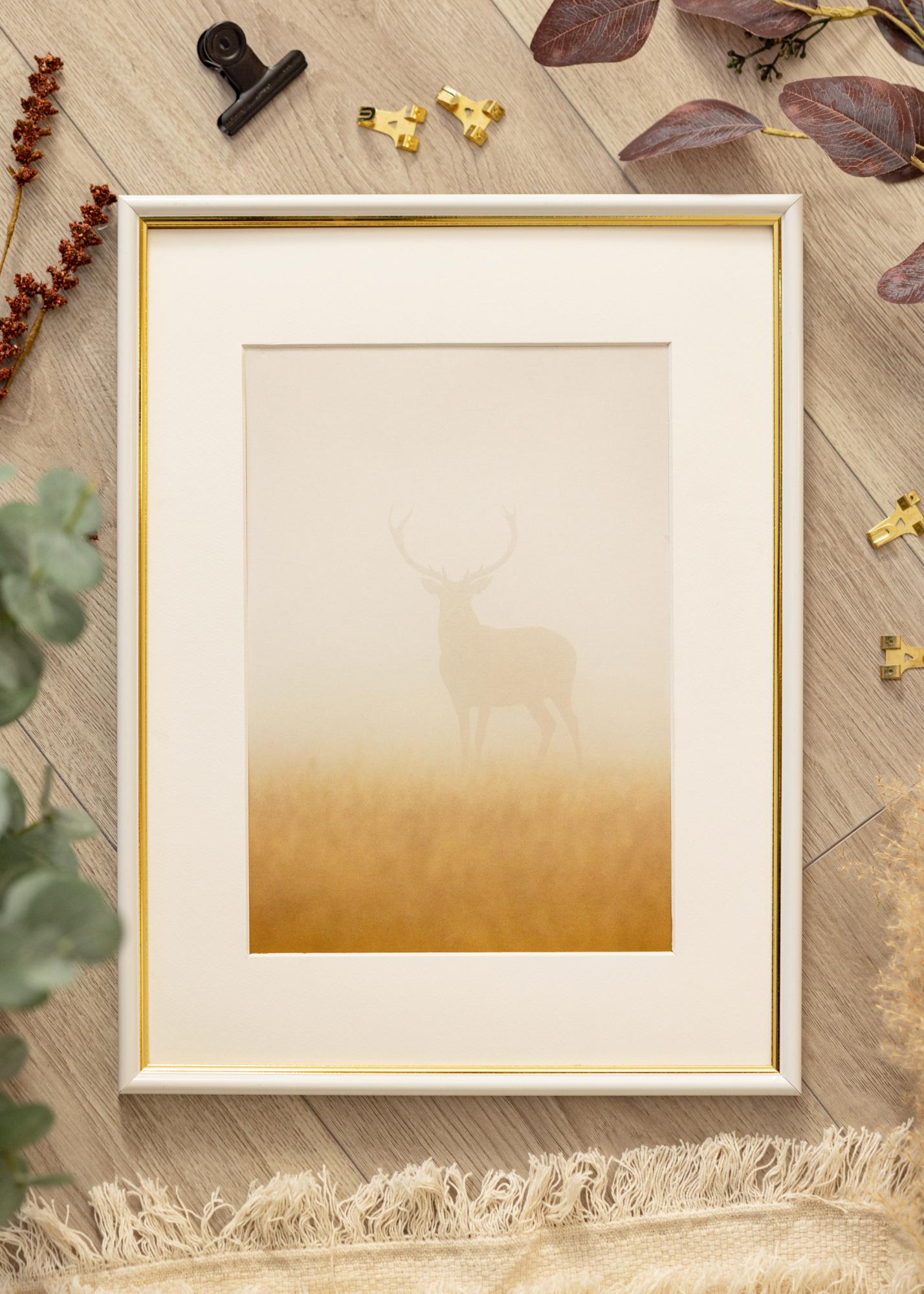 Jazz Bela je lep foto okvir, ki daje občutek razkošja in elegance. S svojo belo profilno obrobo z zlatim robom najbližje motivu je to odlična izbira za slike ljudi ali hišnih ljubljenčkov.