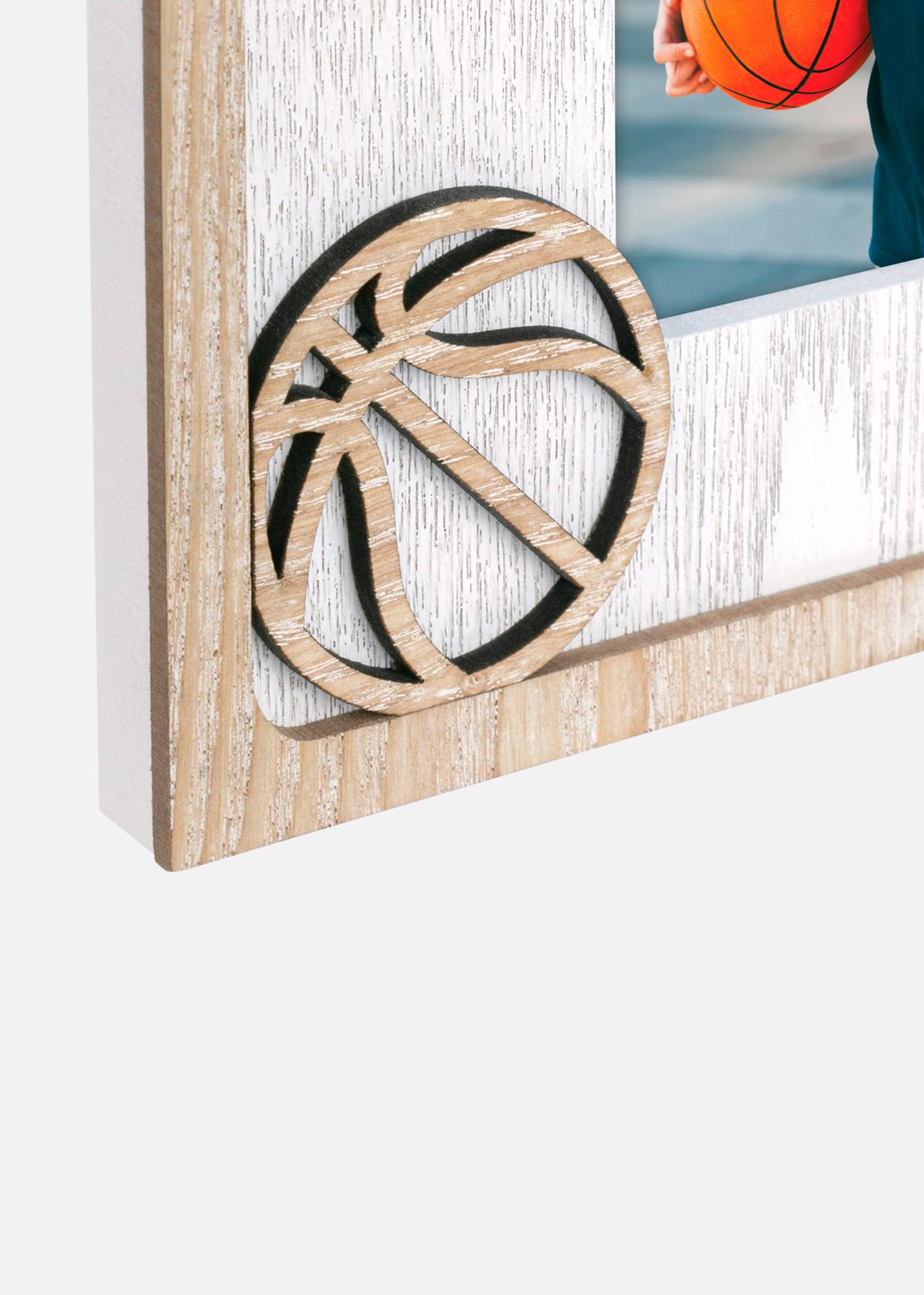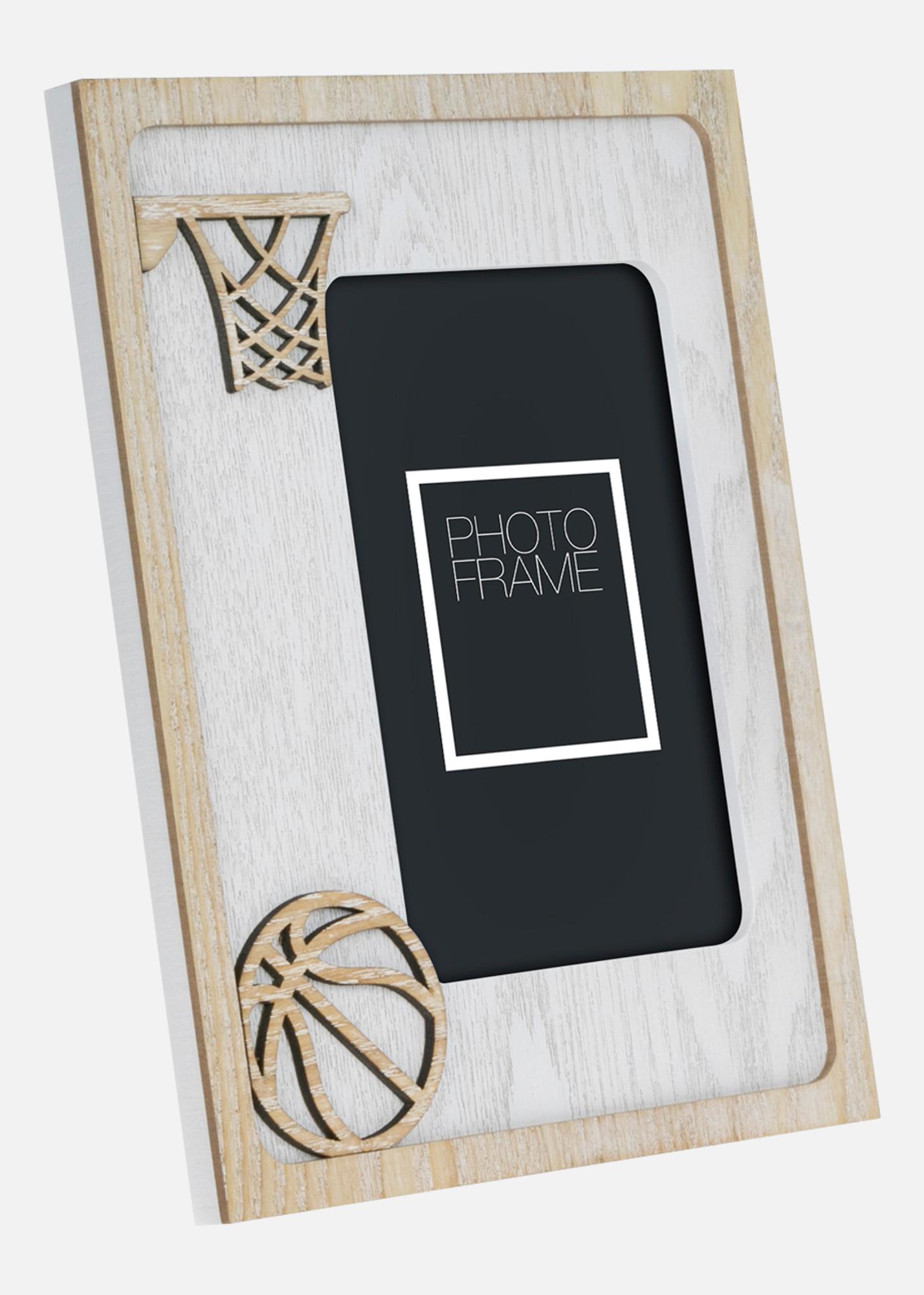 Ta okvir za fotografije ima športen in igriv dizajn s košarkarsko tematiko, popoln za košarkarske navdušence in mlade športnike. Na okviru so izrezljani detajli košarkarskega obroča in košarkarske žoge, kar še poudarja tematski izraz. Okvir je prilagojen za fotografije velikosti 10x15 cm, kar ga naredi idealnega za shranjevanje spominov s košarkarskih treningov, tekem ali drugih športnih trenutkov. Popolno darilo za ljubitelje košarke ali kot osebna dekorativna podrobnost v športni sobi.