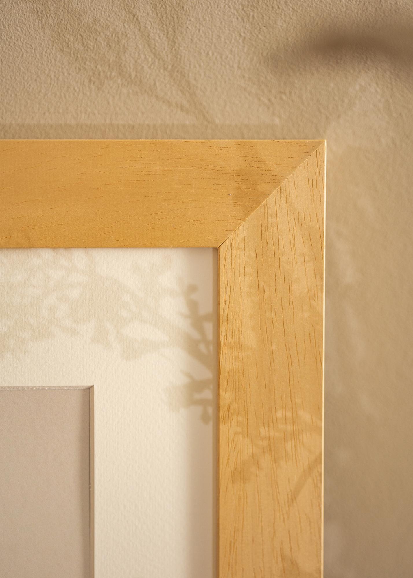 Elegantni okvir iz lesa z belo passepartout pričara vašim slikam stilsko uokvirjanje in poudari motiv na okusen način. Passepartout ustvarja zračen prostor med sliko in steklom, kar ne samo da ščiti vaše umetniško delo, ampak tudi daje profesionalen pridih predstavitvi.