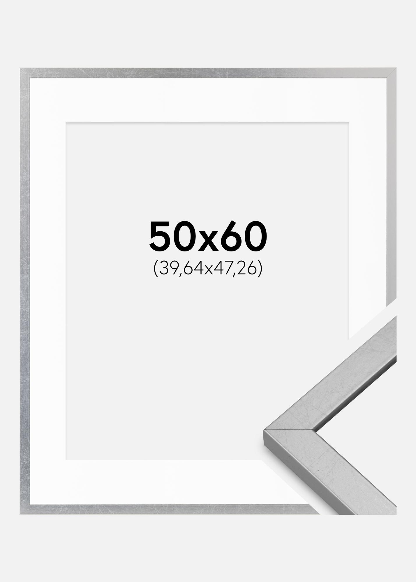 Okvir Minerva Srebrna 50x60 cm - Paspartȗ Bela 16x19 inches